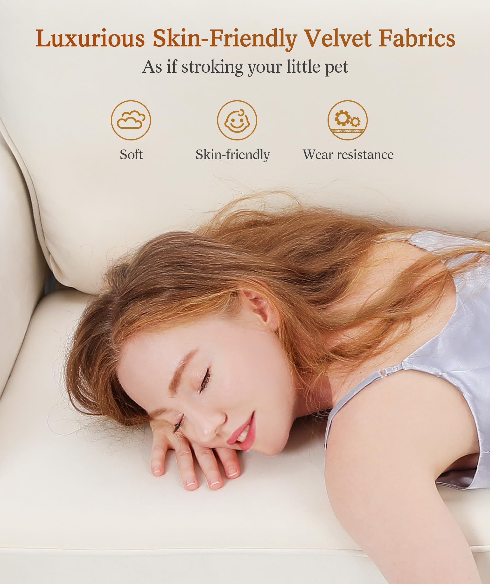 - Don't hesitate, just collapse on the comfy white velvet couch when you're tired, and your fatigue will disappear in no time. The sofa's filling density reaches 32D, which is very fluffy, evenly releases pressure, and is soft but not easy to collapse. When you nestle in the loveseat sofa, it feels like being in the arms of a lover, warm and comfortable, and even the loudest noise will turn into a lullaby. The beige couch is a great Christmas gift for your family. They can take a nap, watch movies, read, or play games on the living room sofa and enjoy their leisure time.