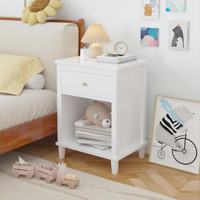 Kids Nightstand, Modern Toddler Nightstand with One Drawer & Open Shelf