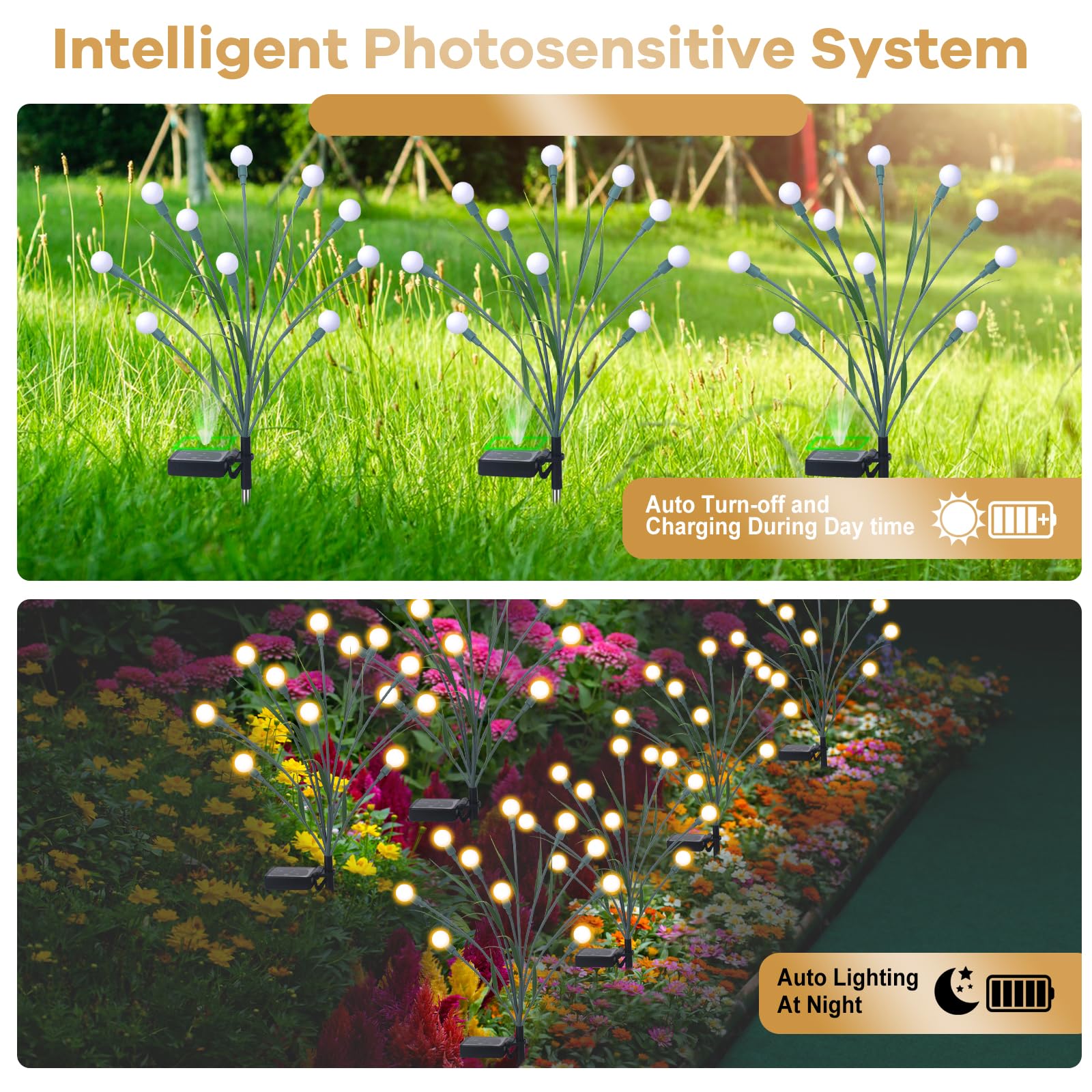 - 2024 Brand New Upgraded Firefly Solar Lights - Designed with a plant simulation appearance, all green color except lamp beads, blend naturally with the environment.