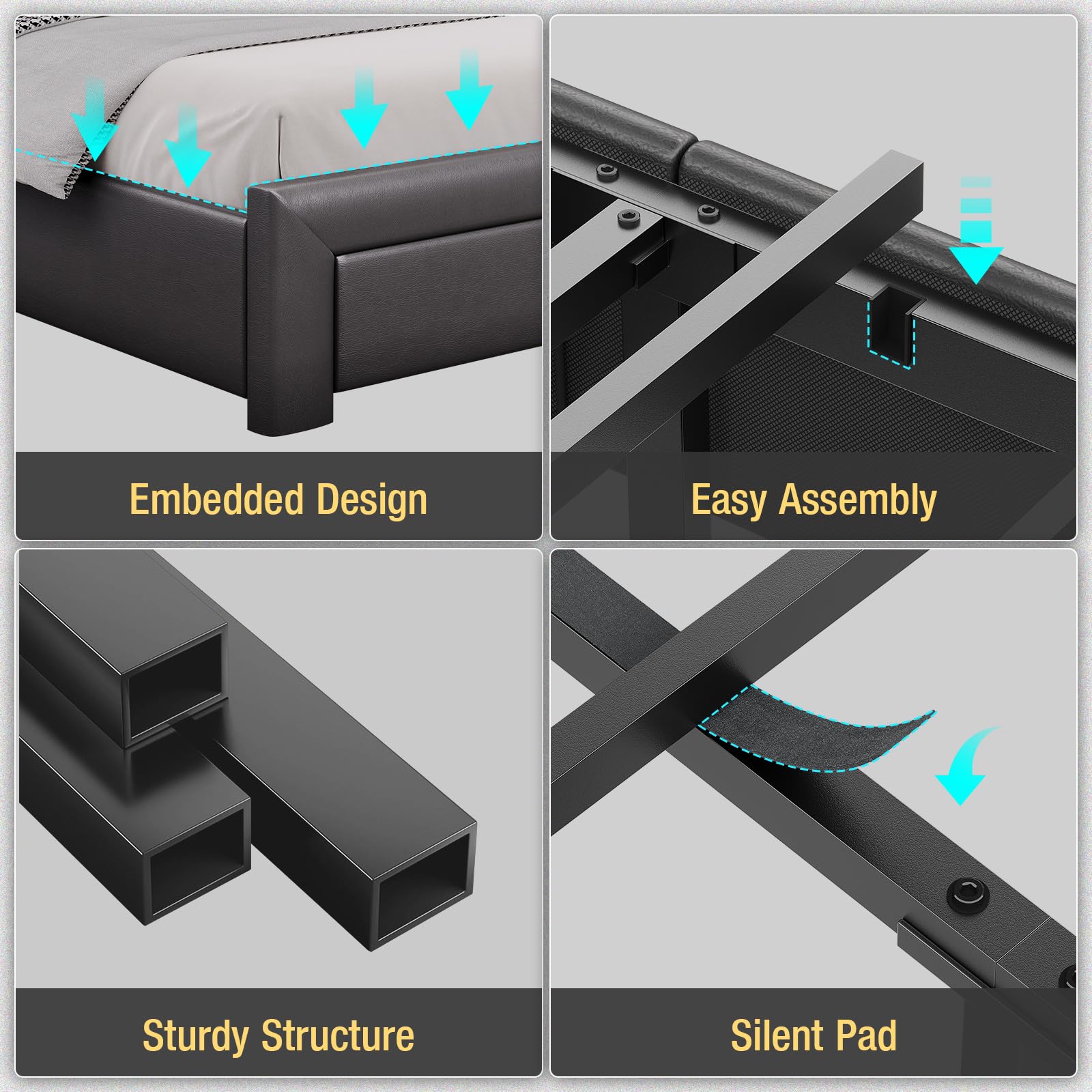 - Elegant Upholstery: Black PU leather headboard with storage compartments adds sophistication and functionality