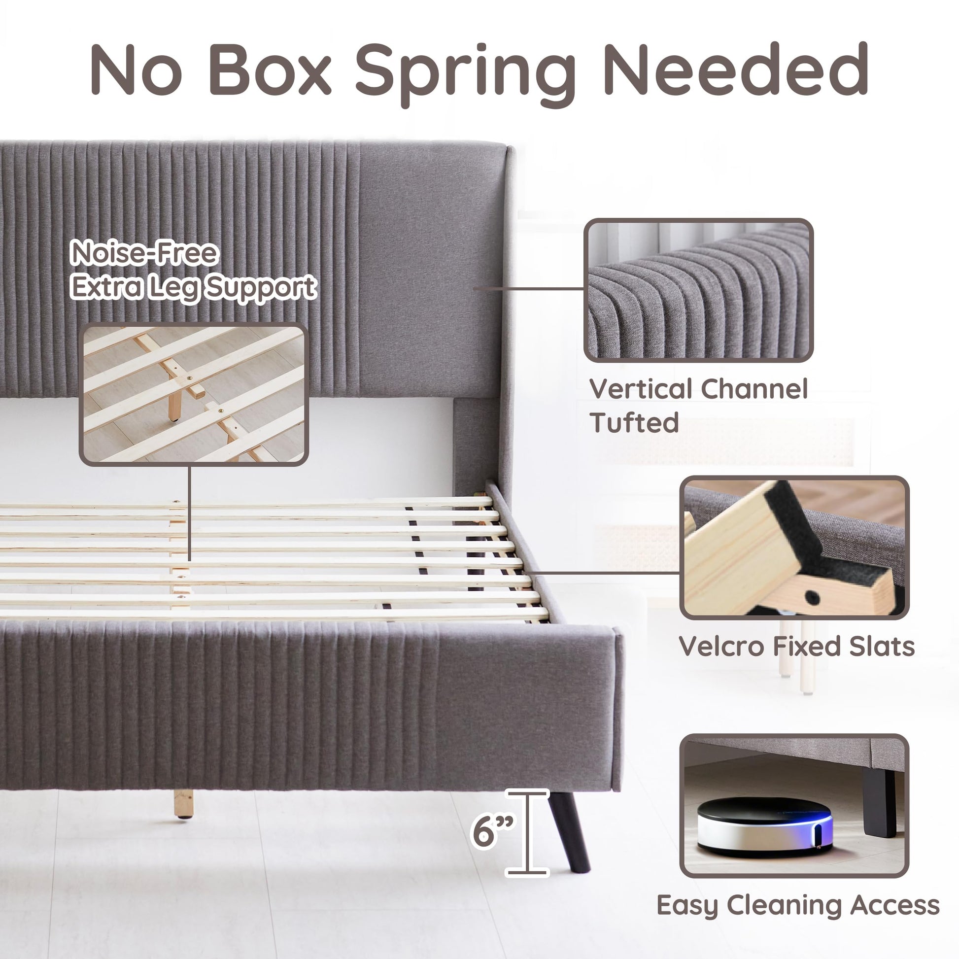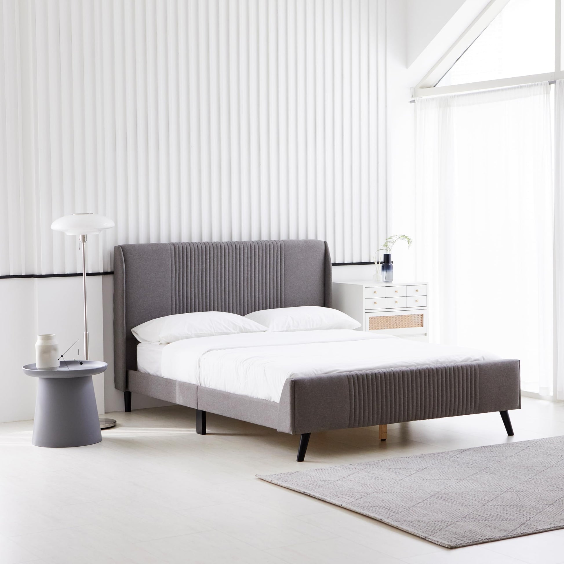 | Headboard Style | Wingback with Vertical Channel Tufting |