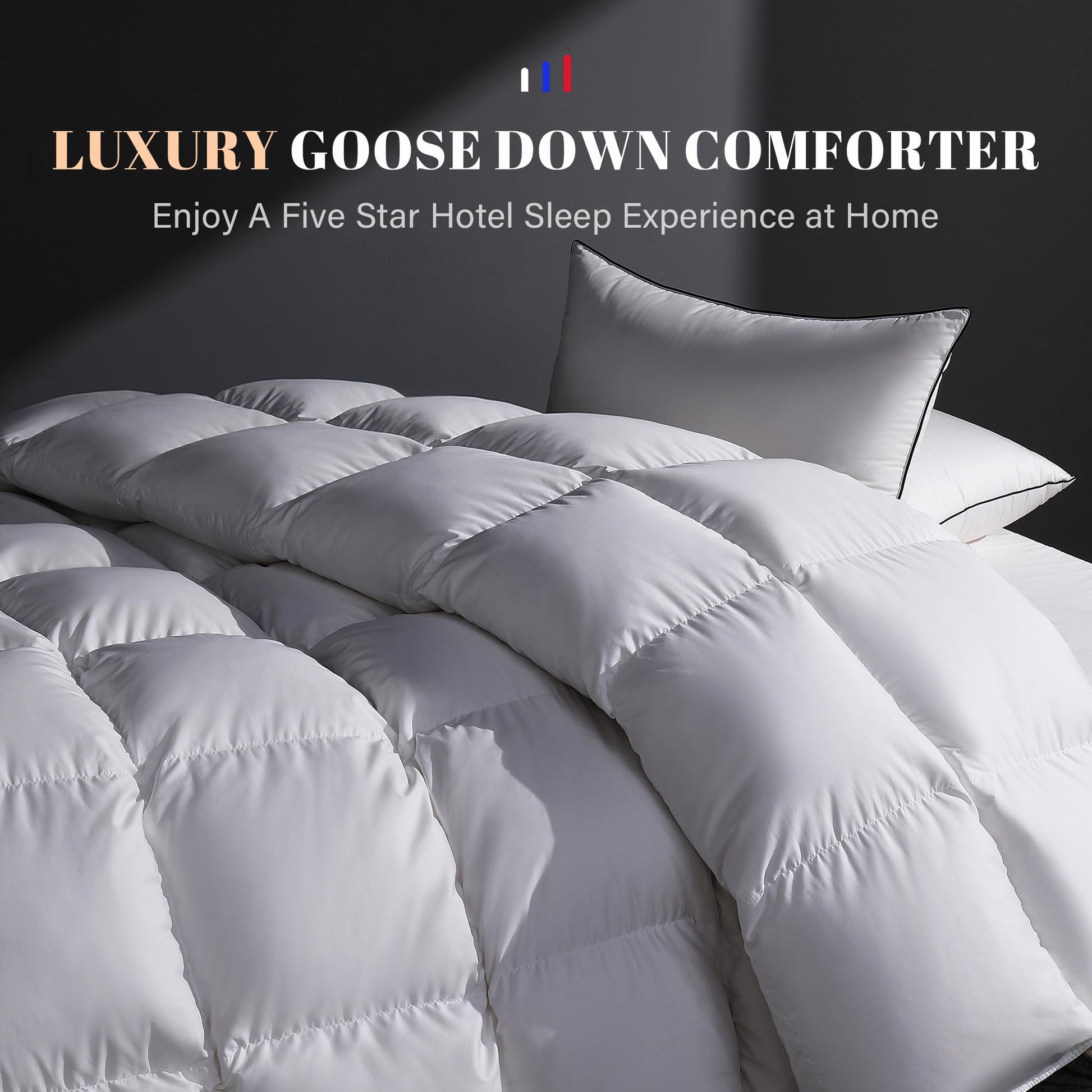 King Size Feather Down Comforter - Light Weight Baffle Box Duvet Insert