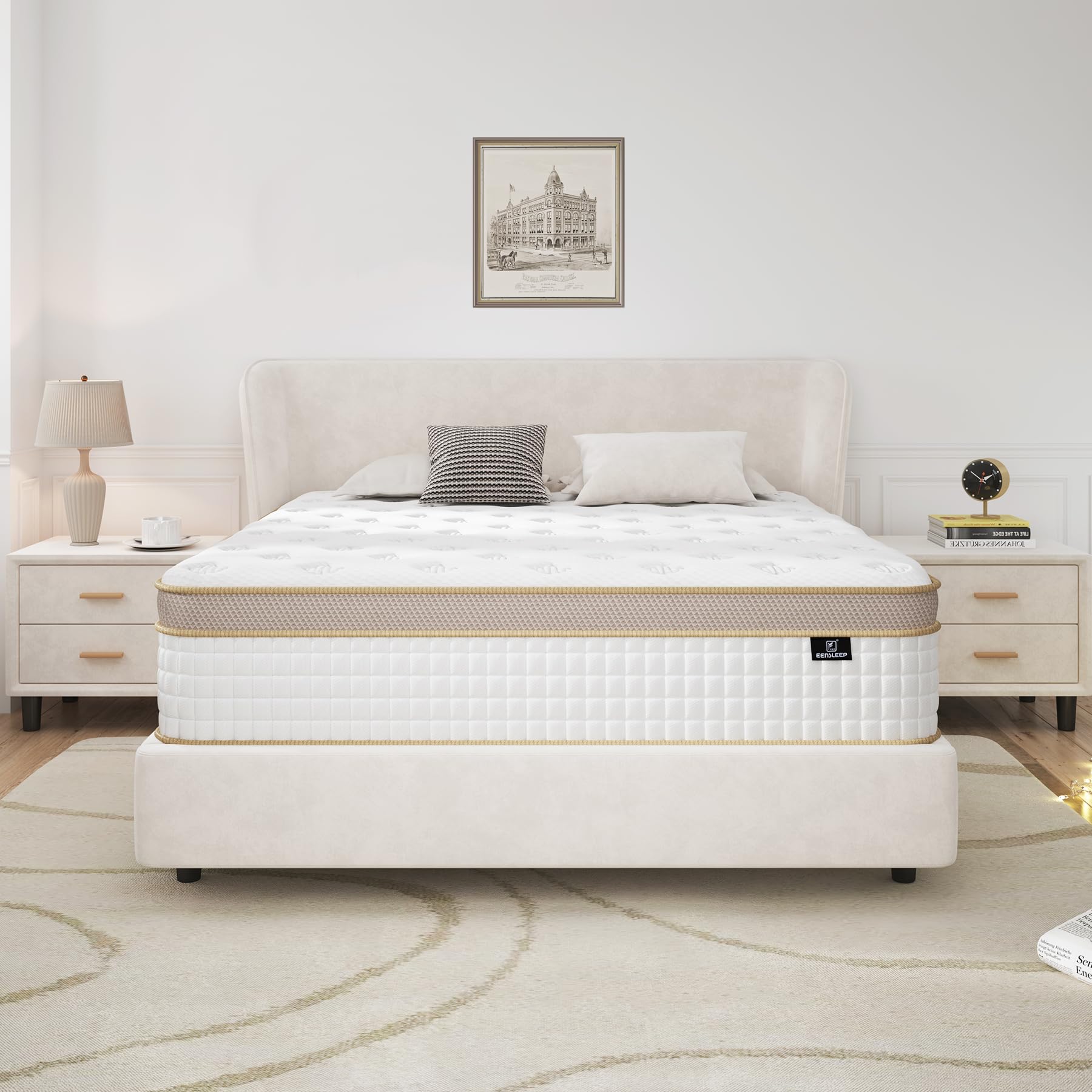 - COMFORTABLE SLEEP AND STABLE SUPPORT: The king size mattress features an Upgrade Strengthen individual support spring and multiple layers of high-density memory foam. Make sure your weight is evenly distributed from head to toe to fully relax your muscles, release stress, relieve back pain, and allow you to enjoy a deep and comfortable sleep experience.