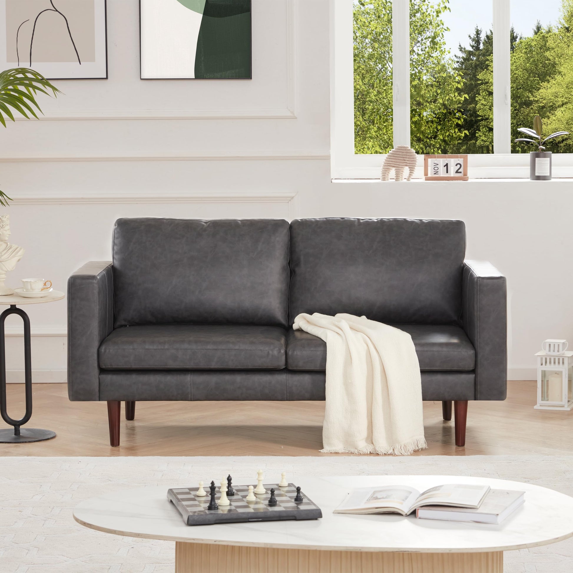 - Modern Sofa: Elevate your home with our 65-inch faux leather sofa, designed to embody mid-century modern style. Featuring clean lines, a soft back and seat, and solid wood legs that seamlessly complement any living room, office, or bedroom decor theme. Whether you're furnishing your space or seeking bedroom furniture, this loveseat is an ideal choice to enhance your room's ambiance.