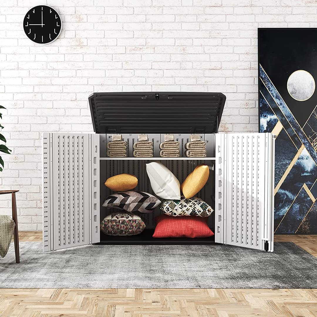 - PERFECT FOR STORAGE — The storage cabinet could place all kinds of tools, sundries, trash cans, etc. Meanwhile, it is suitable for all kinds of occasions: indoor, outdoor, balcony, yard, garden, street, etc.