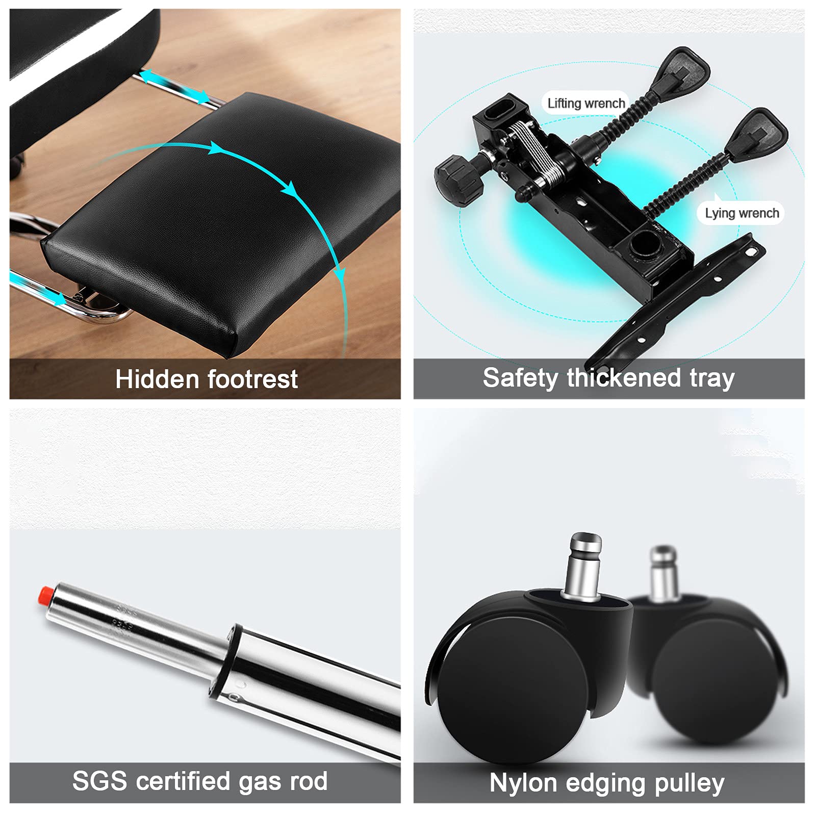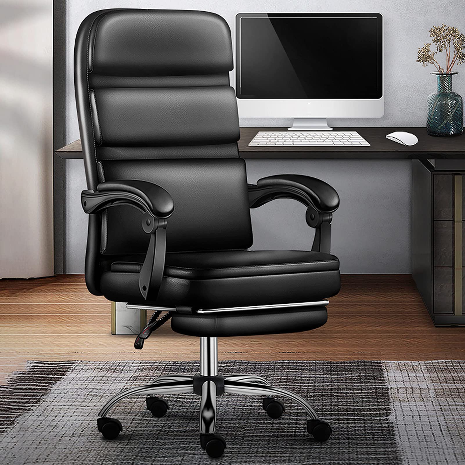- After a long day in the office, you may feel all kinds of discomfort, back pain, leg pain, etc. Our office chair has maximum durability and comfort. The built-in lumbar support can reduce back fatigue from a busy workday. When sitting down, it can help relieve pressure on your calves and improve circulation.