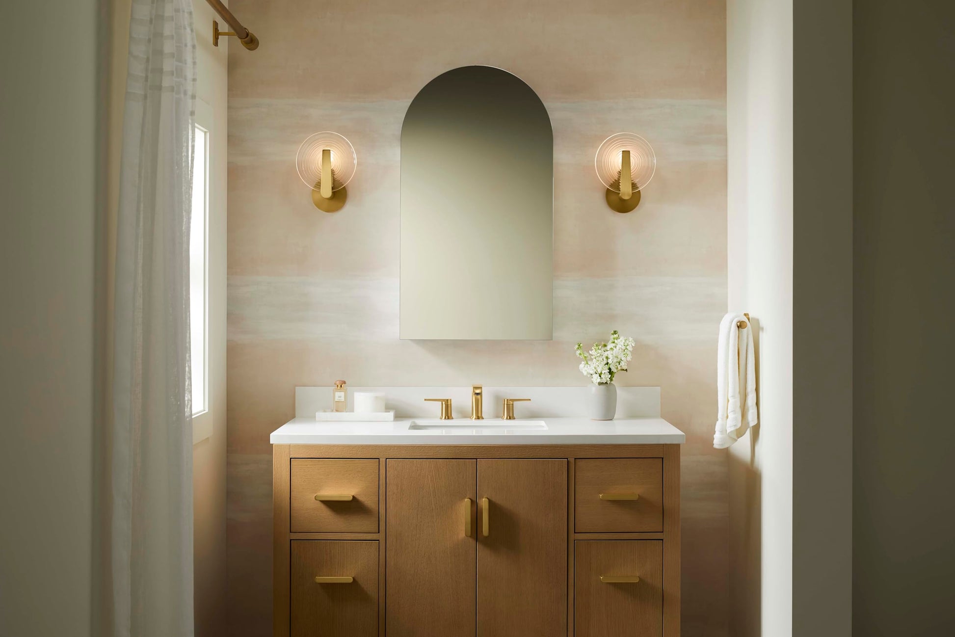 - SLEEK MIRRORED OVERLAY: This arched bathroom medicine cabinet includes a full-overlay mirrored door with flat edges and arched top for a modern finish