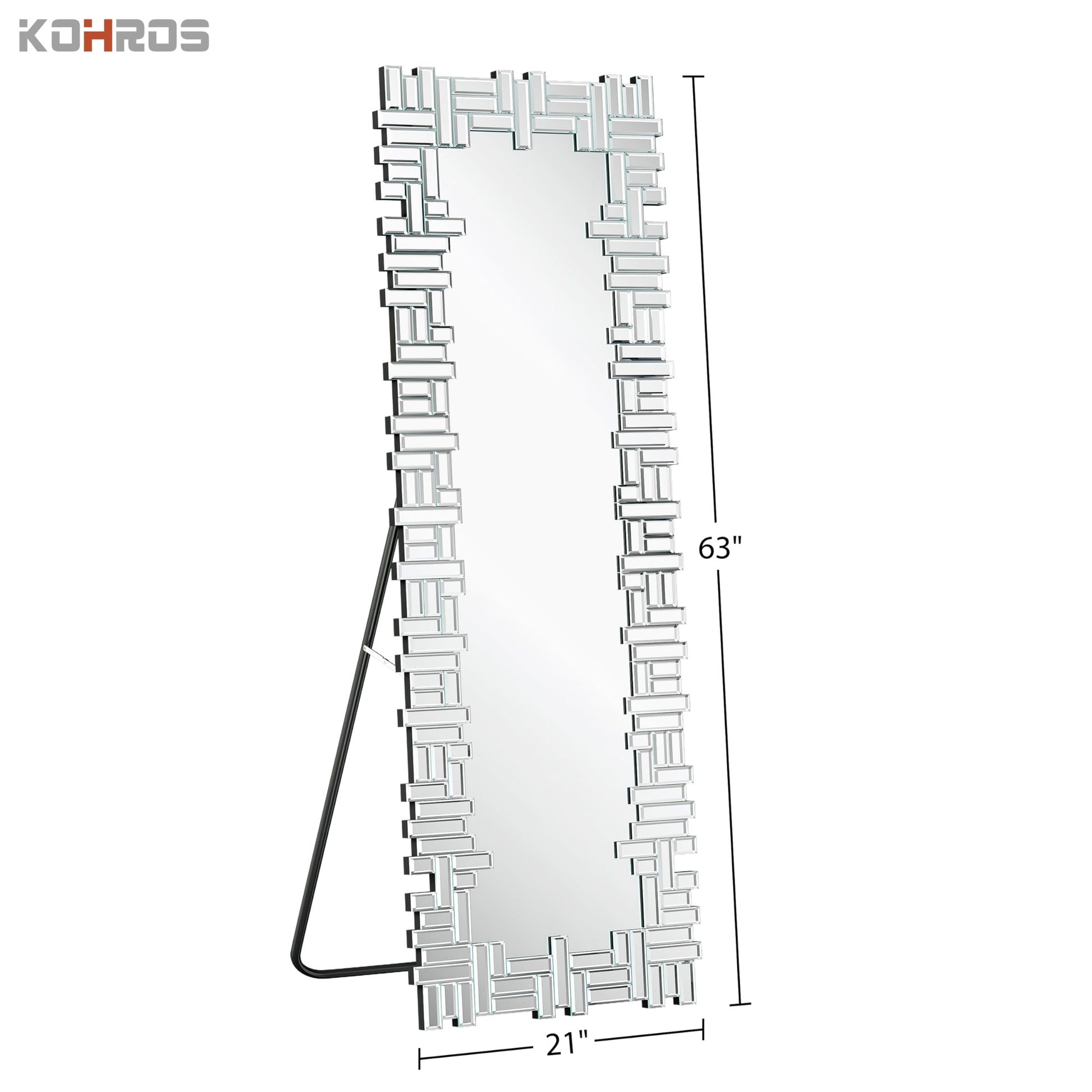 - STYLISH DESIGN: The center of this full-length mirror is a huge piece of glass surrounded by some regular and orderly rectangular small glasses. The 63" x 21" size is large enough to illuminate your entire body, allowing you to see from head to toe. It adopts a classic style and can also be used as a decoration to decorate your home space and bring you a happy mood