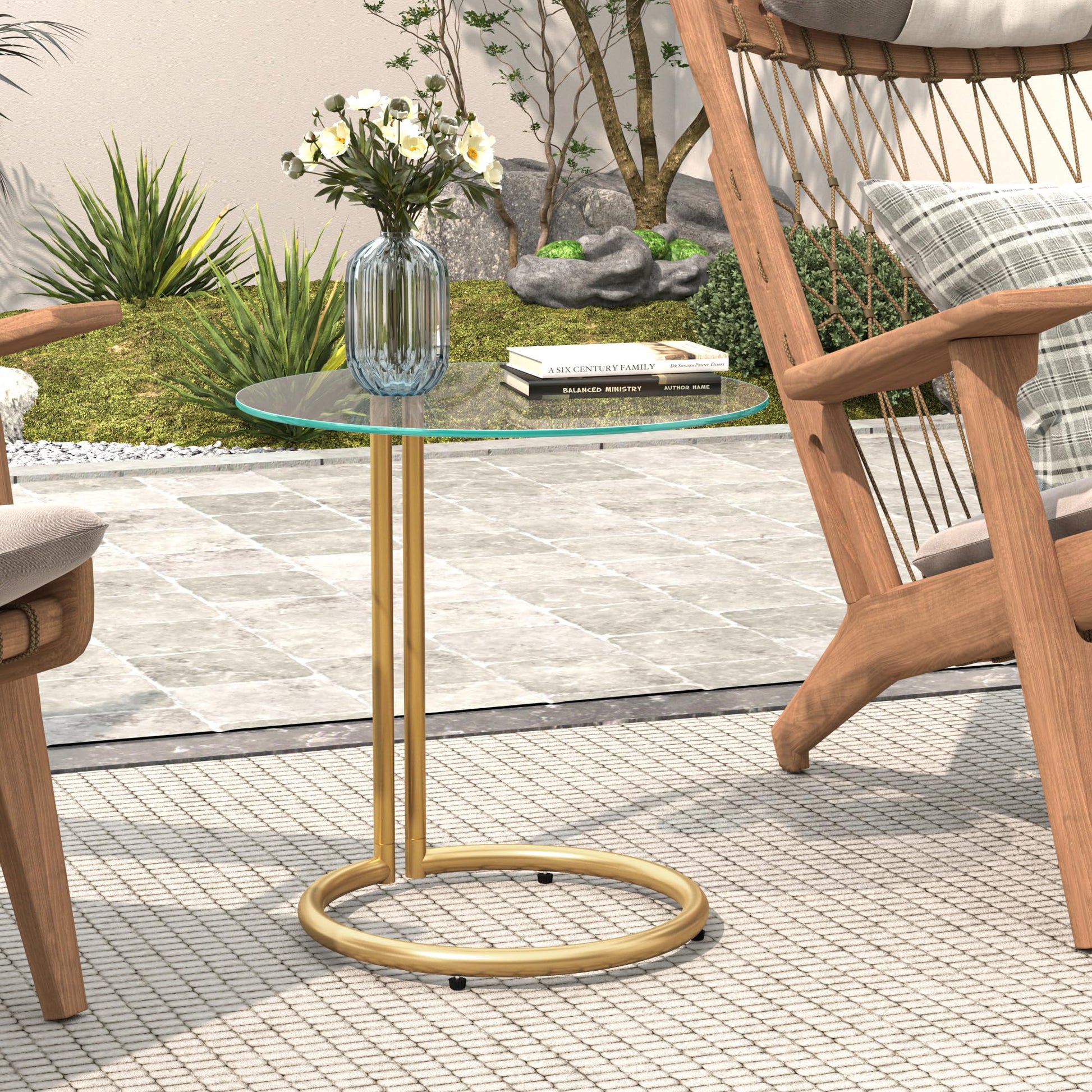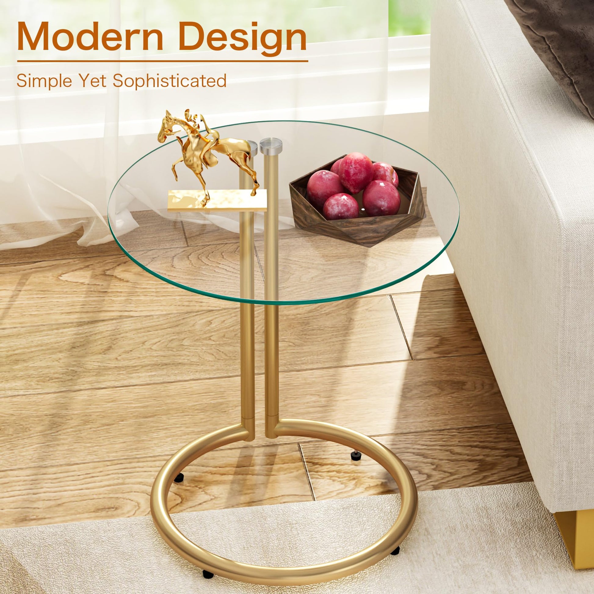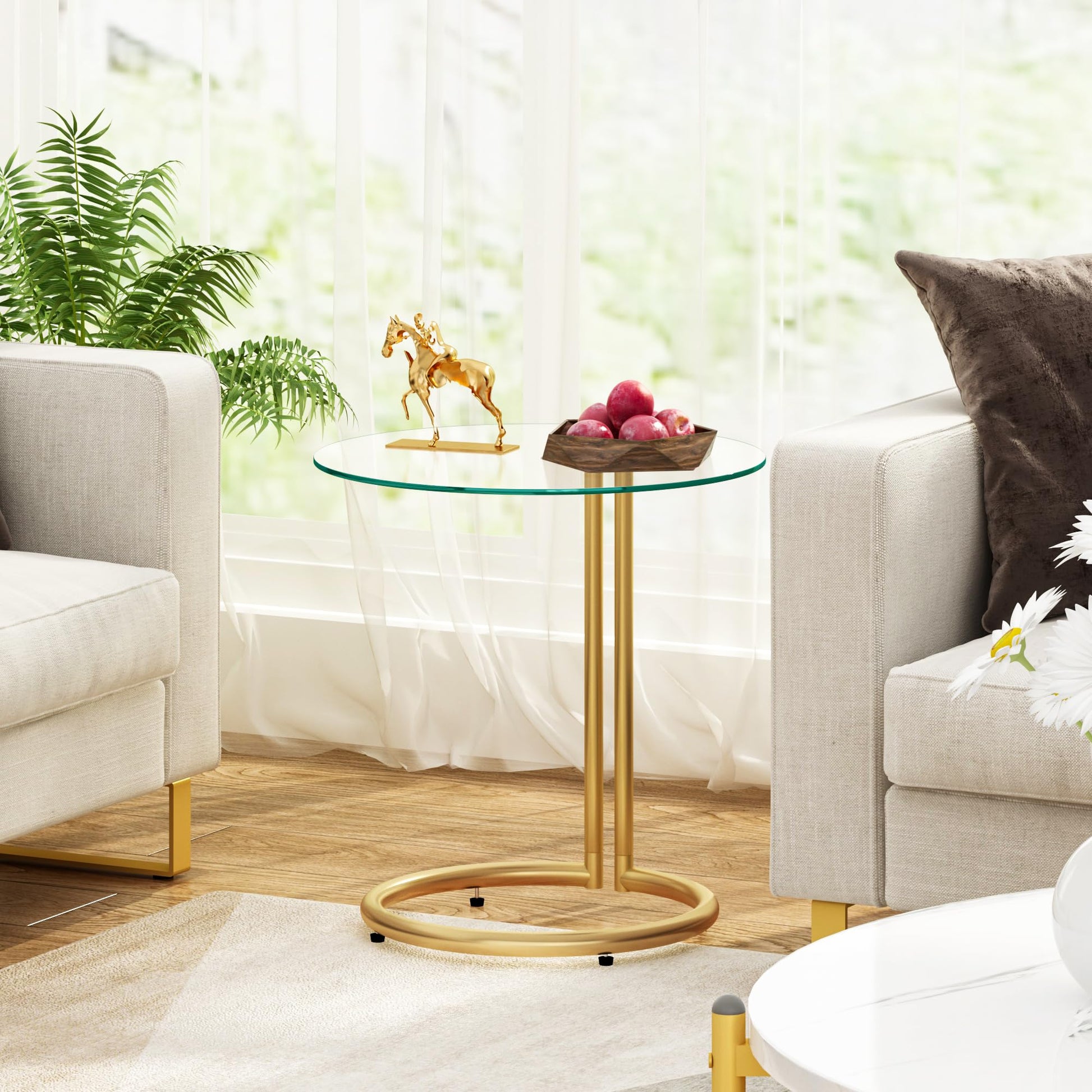 Gold End Table Modern, Round Side Table with Tempered Glass Top and Metal Stand