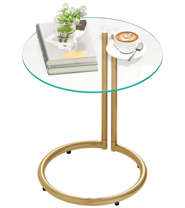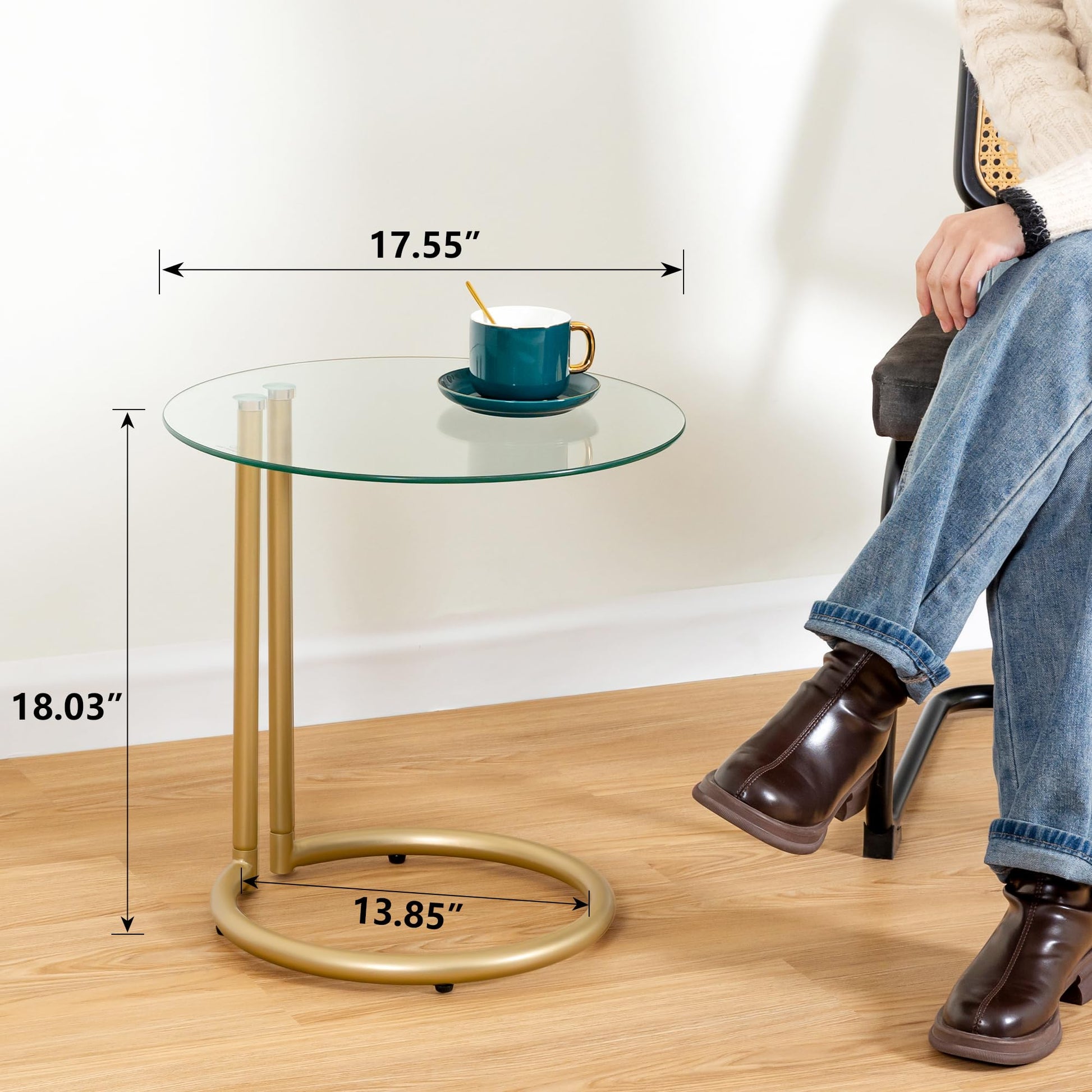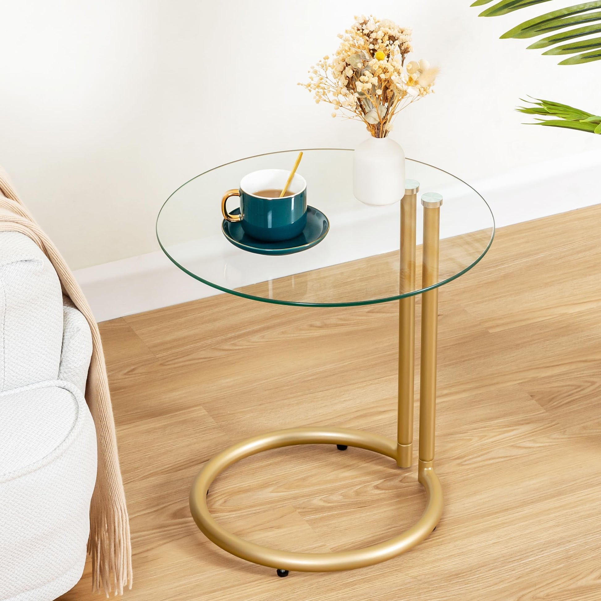Gold End Table Modern, Round Side Table with Tempered Glass Top and Metal Stand