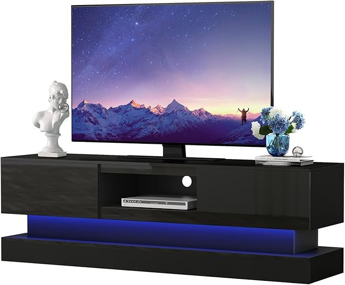 - Ambient Light - This tv media console has built-in LED lights with 16 light colors, 4 light modes and brightness adjustment, you can adjust the light colors and modes with the remote control, the cool lights will make your fun life more energetic. On happy days, why not choose it to add fun and joy
