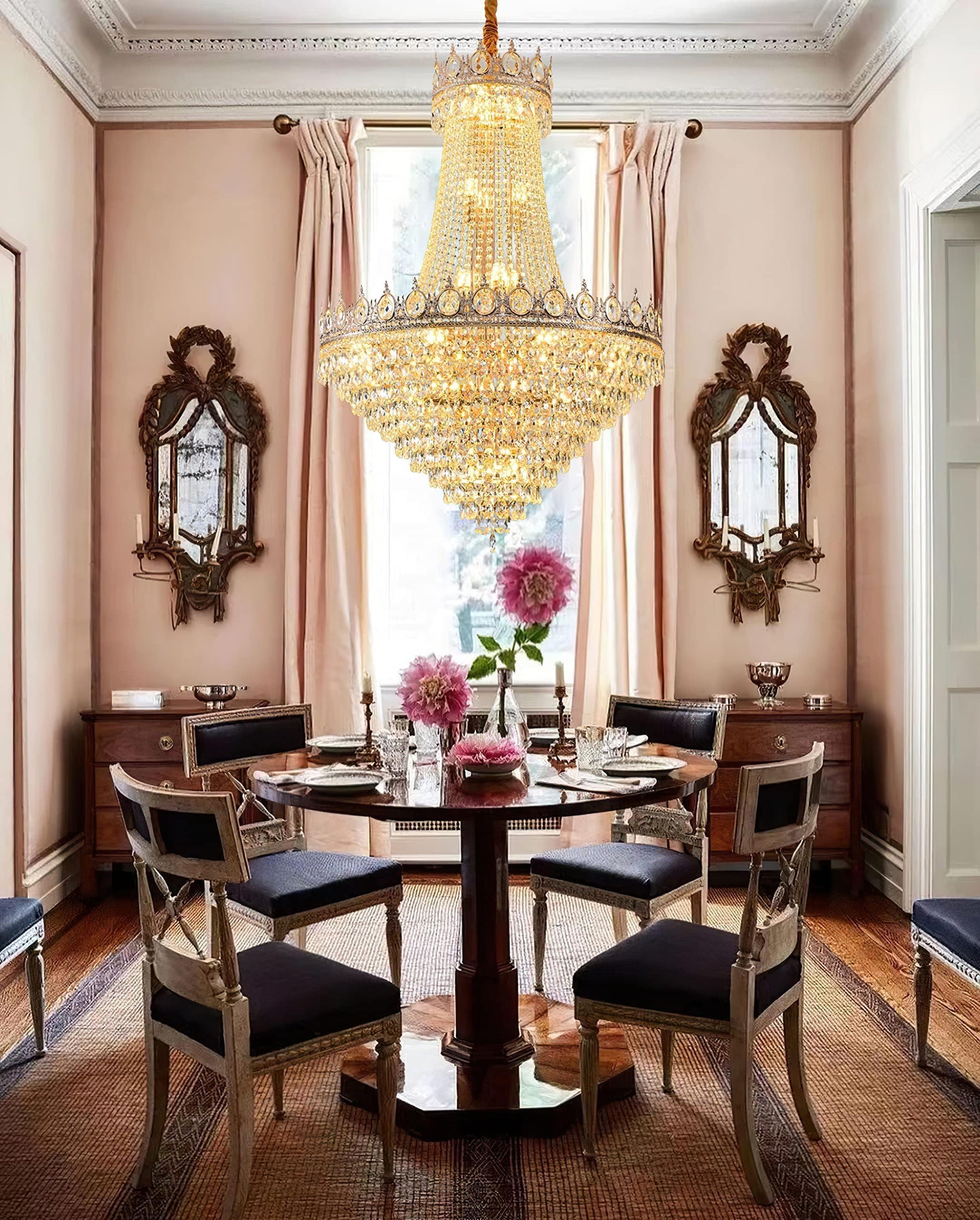 32“ French Empire Crystal Chandelier Modern Gold Crystal Chandeliers Round Large High
