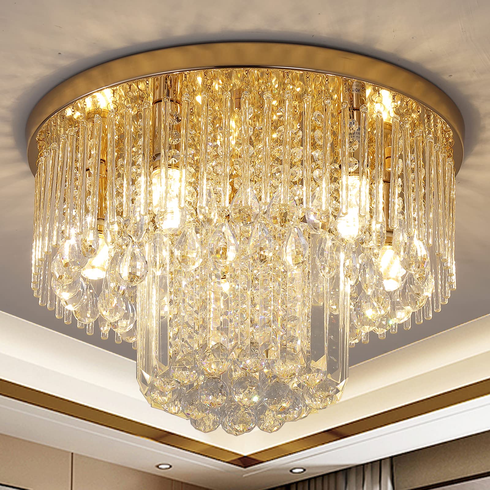 - Application:The crystal flush mount chandelier is suitable for hallway,bedroom,living room,dining room,bar,closet chandelier,etc.
