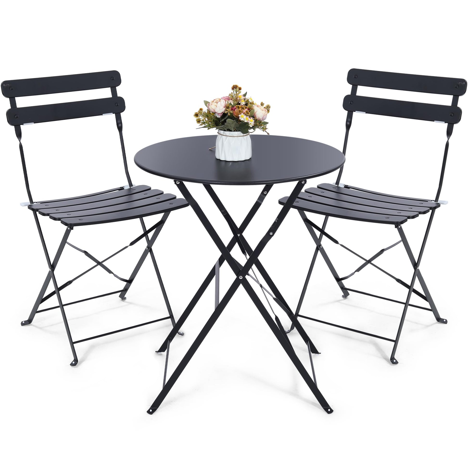 Outdoor 3 Piece Patio Bistro Set, Folding Bistro Table and 2 Folding Chairs