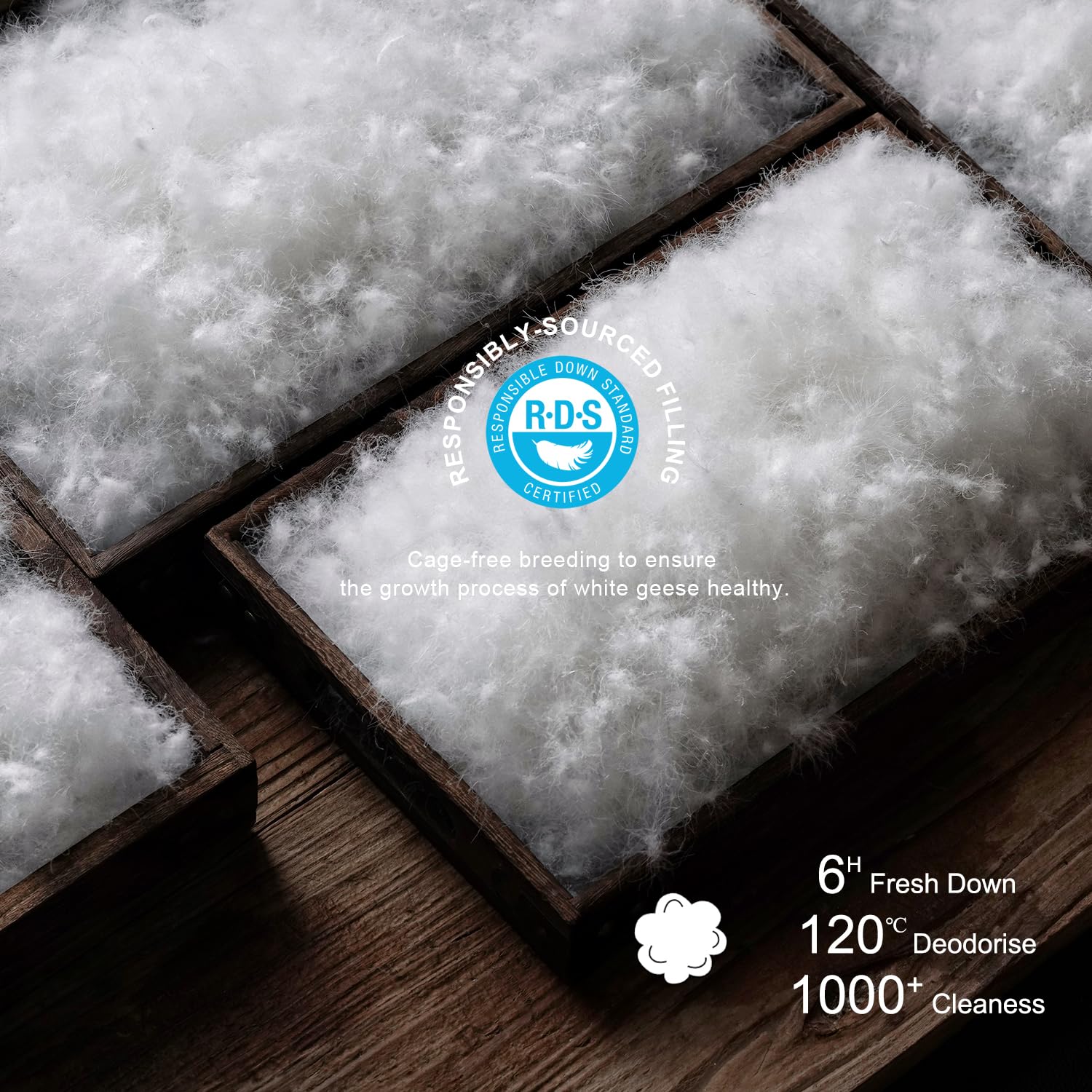 - ★ 80% Goose Feathers & 20% Goose Down --- Selected WHITE GOOSE DOWN & FEATHERS from excellent location and cage-free breeding to ensure the growth process of white geese healthy. More importantly, we added 20% large filling than others! As a result, each down comforter is so fluffy, soft, cozy, and extremely warm, feel like sleeping on a cloud.