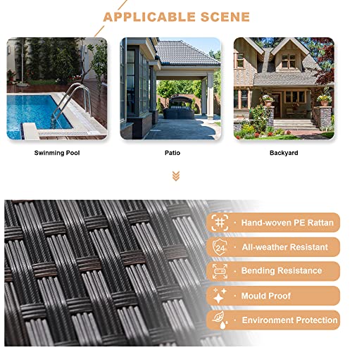 - DURABLE & SOLID MATERIAL outdoor patio furniture set is made of durable synthetic rattan wicker which is more sturdy and long-lasting than traditional wicker. Solid and anti-rust steel frame improves the sofa’s stability and lifespan. Tempered glass can prevent the coffee table from scratches. Breathable and thickened cushions with waterproof fabric cover aim to give you the best user experience
