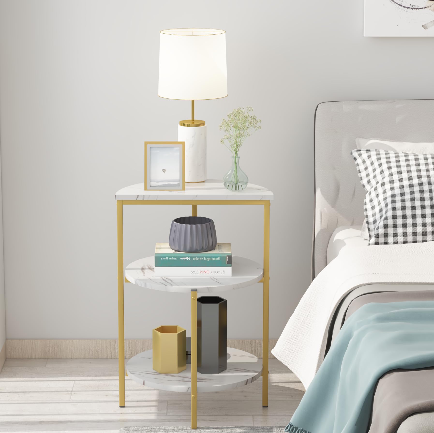 - This unique table set of 3 includes 1pc 2-tier coffee table and 2pc different design and 3-tier accent side tables,which offer you ample space for storage, making your stuff neat.