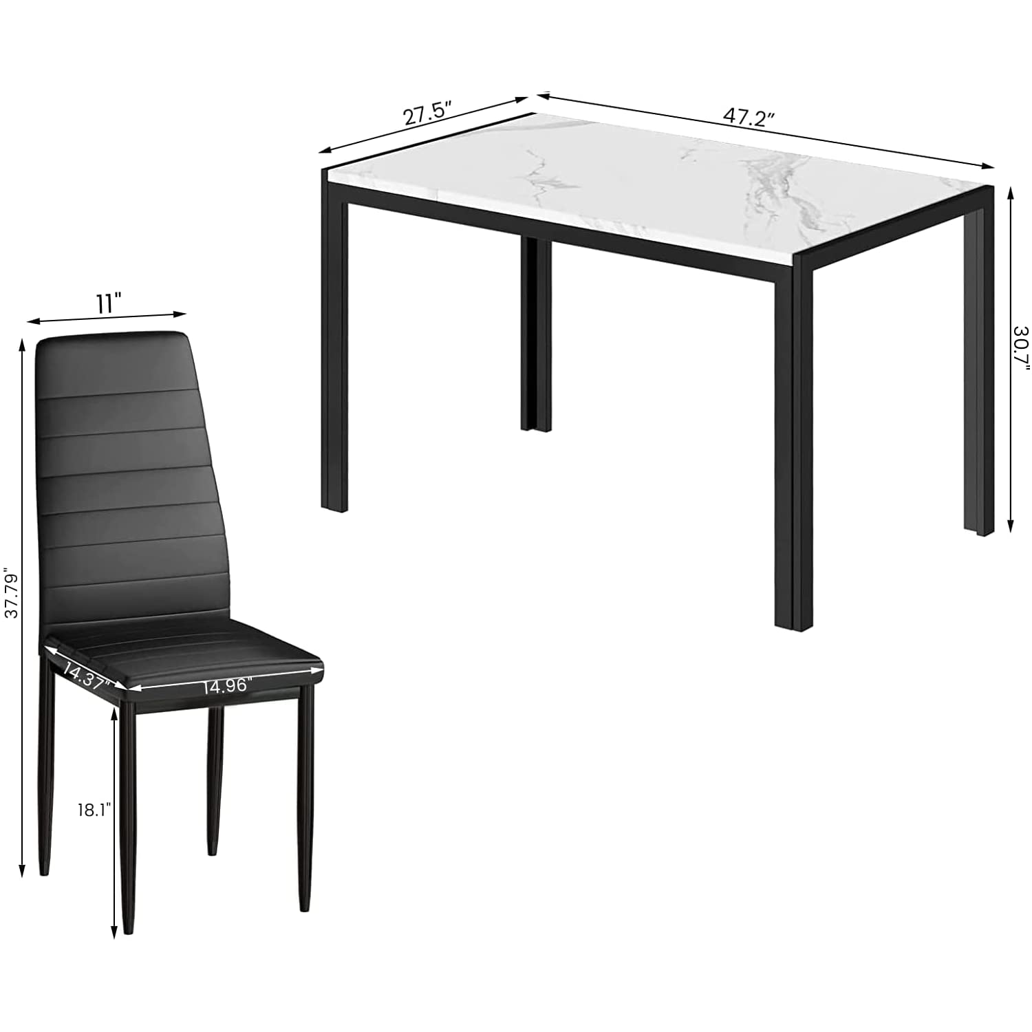 Faux Marble Dining Table Set for 4,5 Piece Dining Room Table Set,Rectangular Table