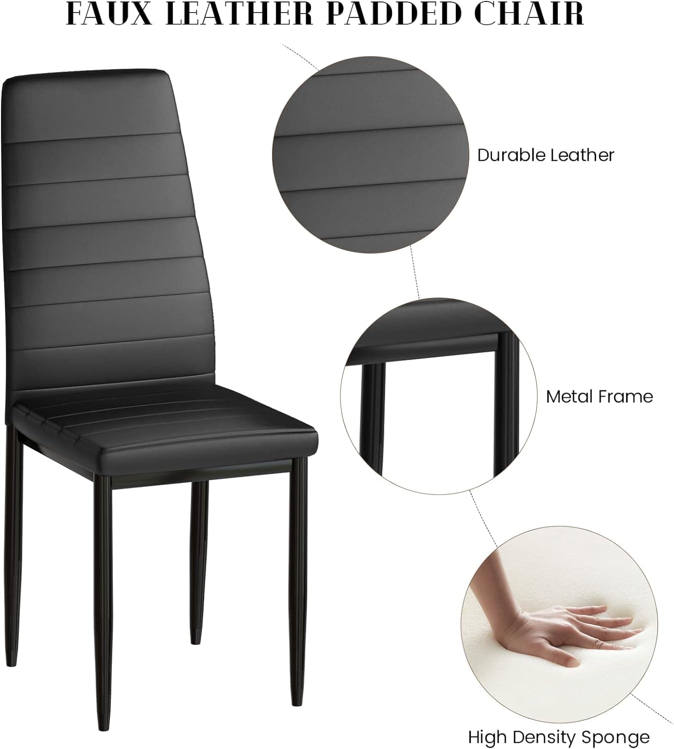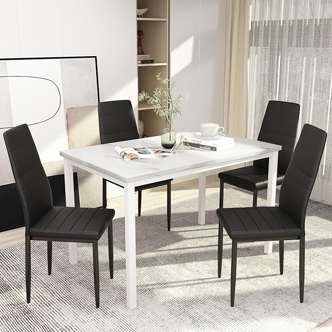 - Classic White Marble Table Top with Black Frame,PU upholstered leather chairs,this Elegant dining table set can be used in kitchens, living room, dining room, you can also enjoy your tea time or working on this table set.