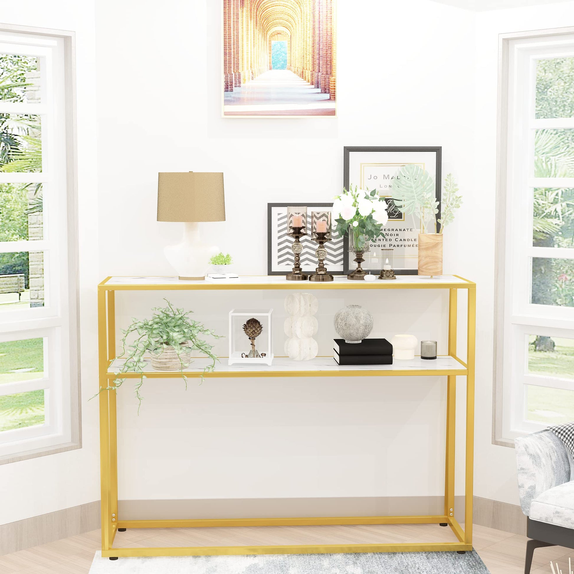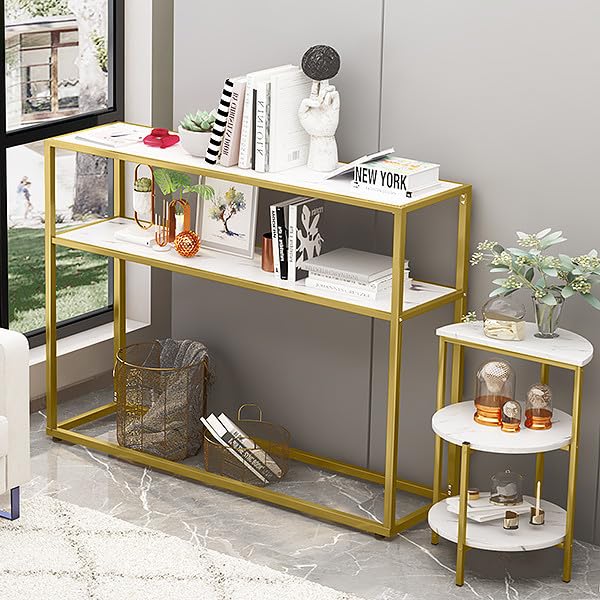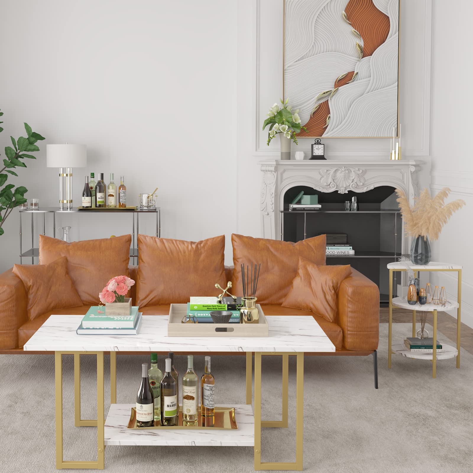 - Comes with a Marble finish Rectangle coffee table,a side table and a console/entryway table, which is practical but also creates a strong high class atmosphere.
