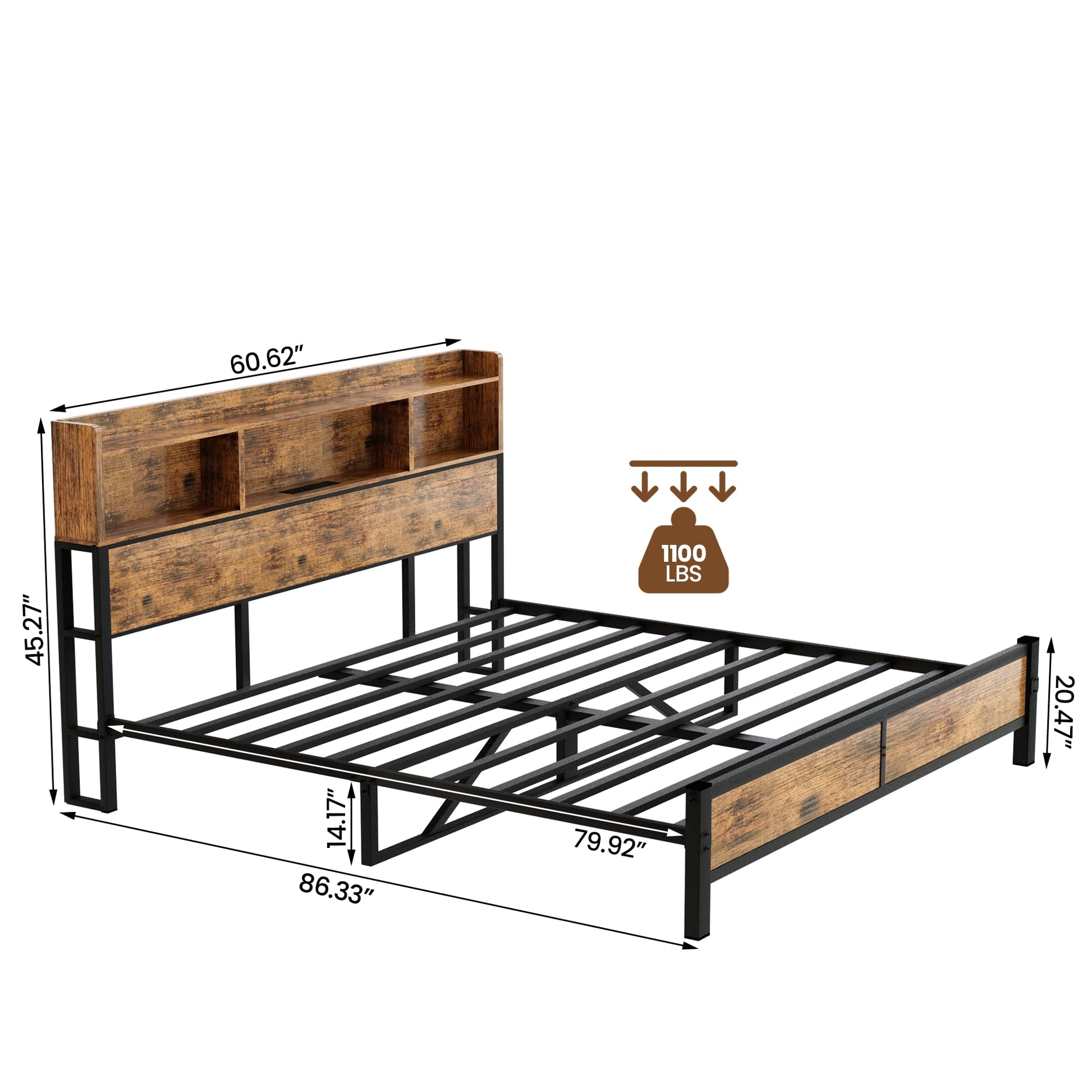 Lamerge Queen Bed Frame with Storage Headboard and Charging Station