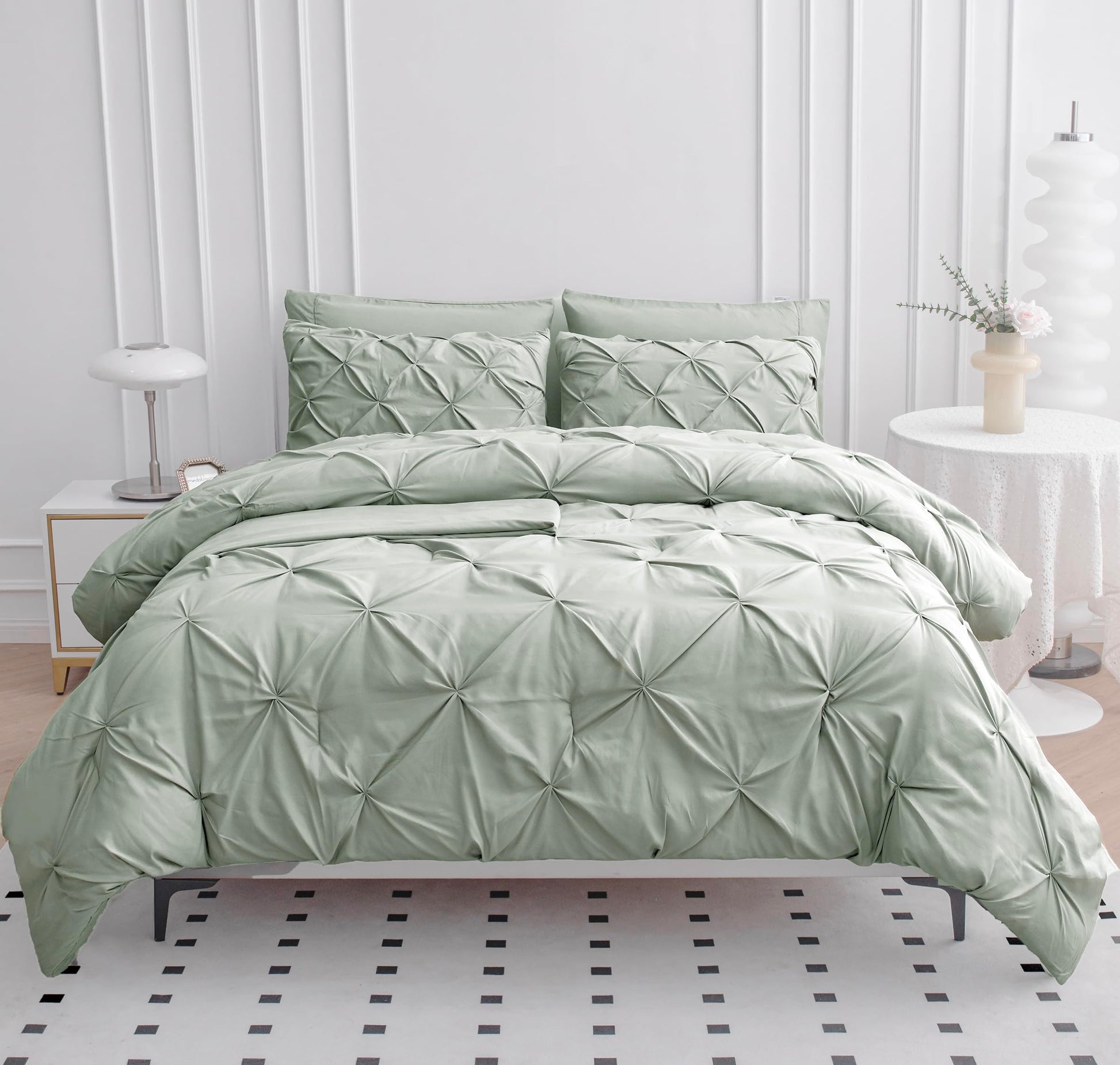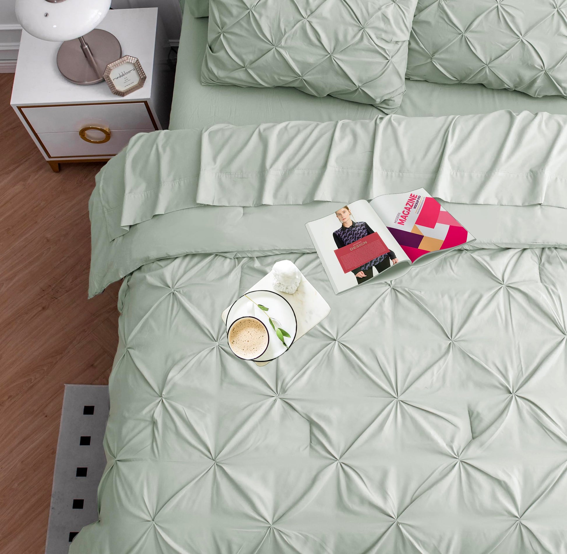- Elegance Redefined: Suit any home décor, with our complete Queen Bedding Comforter Set. Merging pinch pleats and geometric patterns, it transforms your space into a stylish retreat. Experience the exceptional softness of the fine brushed microfiber sheets, pillowcases & shams, for a satisfying feel ever time you rest.