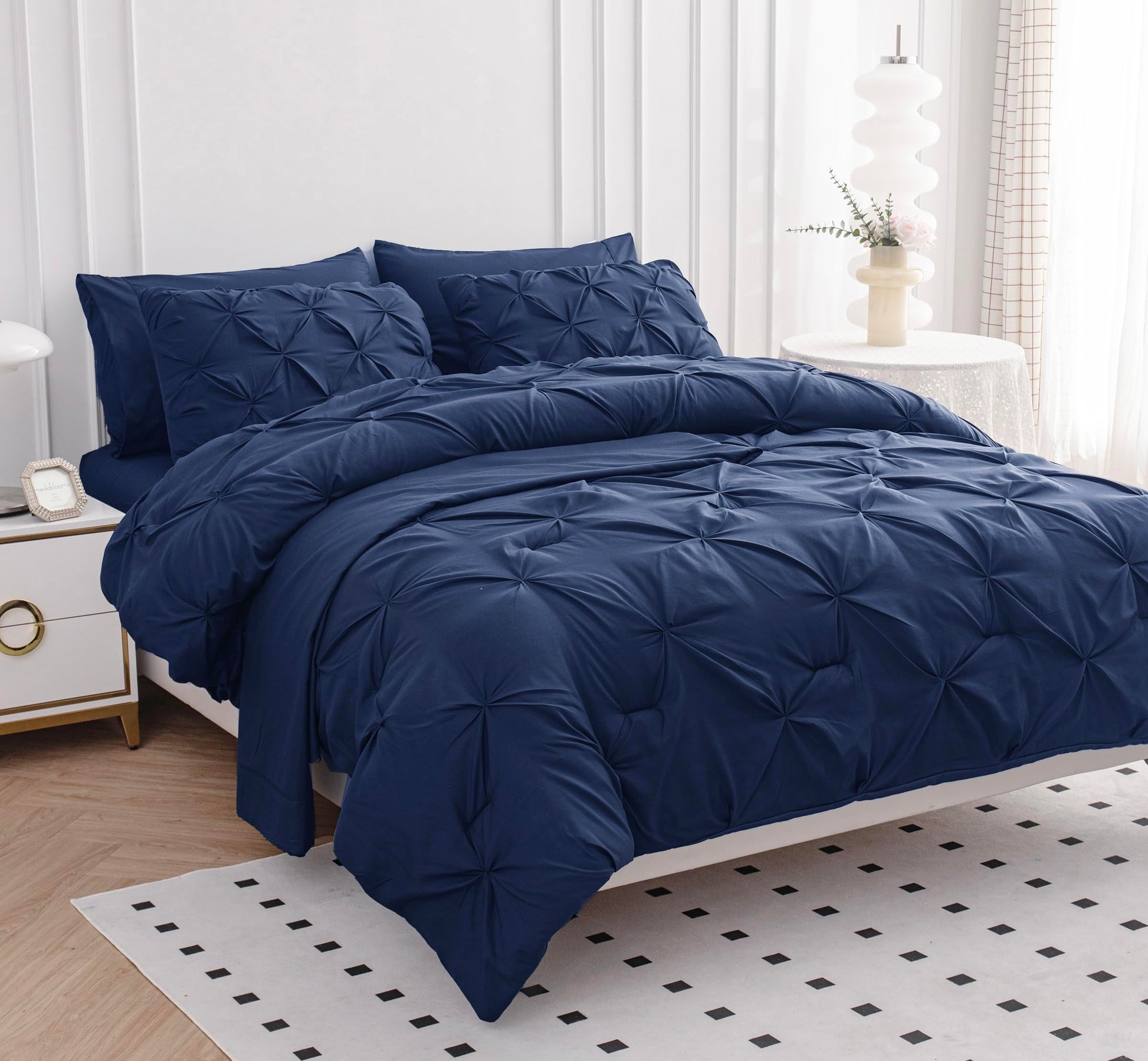 - Elegance Redefined: Suit any home décor, with our complete Queen Bedding Comforter Set. Merging pinch pleats and geometric patterns, it transforms your space into a stylish retreat. Experience the exceptional softness of the fine brushed microfiber sheets, pillowcases & shams, for a satisfying feel ever time you rest.