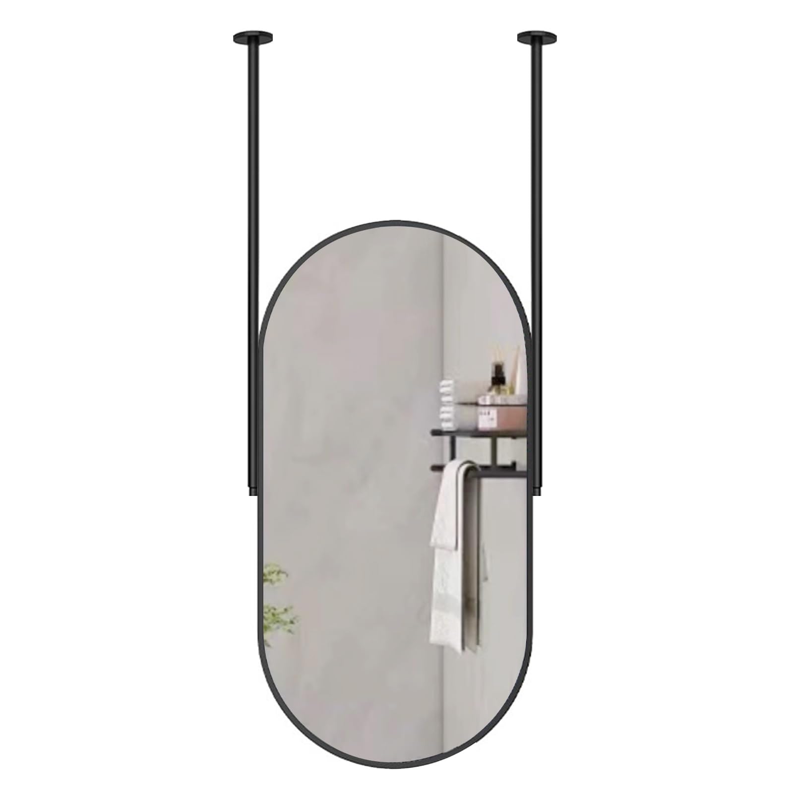 Oval Ceiling Mounted Mirror with Black Metal Frame, Wall Floating Makeup Vanity Mirrors