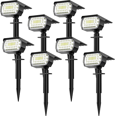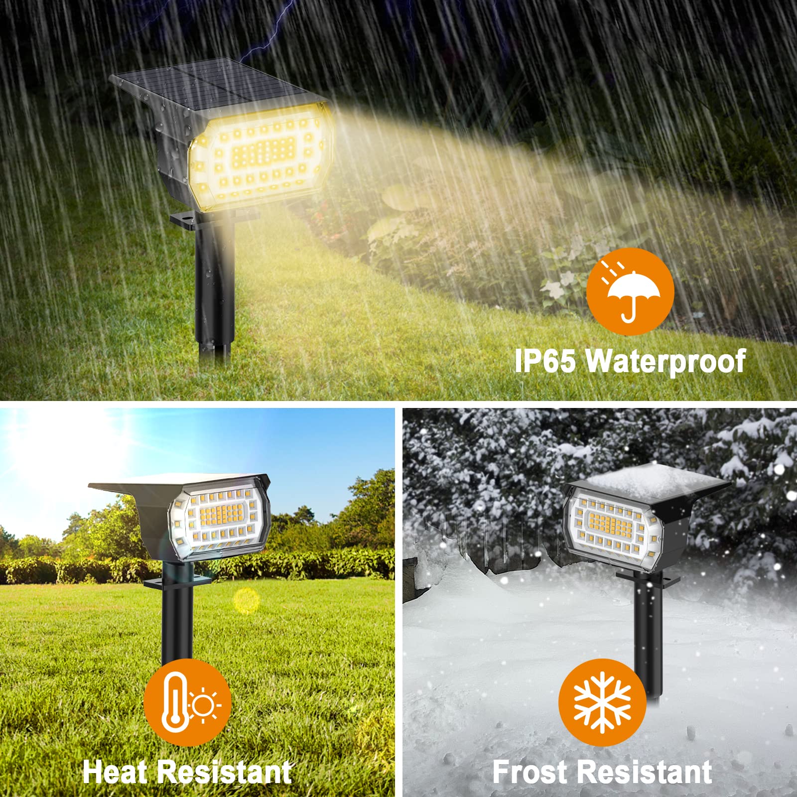 - Equipped with 57 high-brightness LED beads, solar garden lights can produce a maximum of 700 lumens 3000K cold white light. Designed with reflective structures, solar spotlights outdoor can reduce lighting loss and increase brightness. They light up on both sides and provide a larger wide illumination angle than others on the market.
