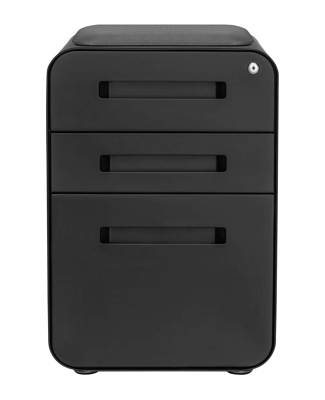 STOCKPILE Curve Seated 3-Drawer Mobile File Cabinet with Removable Magnetic Cushion Seat - Metal Filing Cabinet, Pre-Assembled
