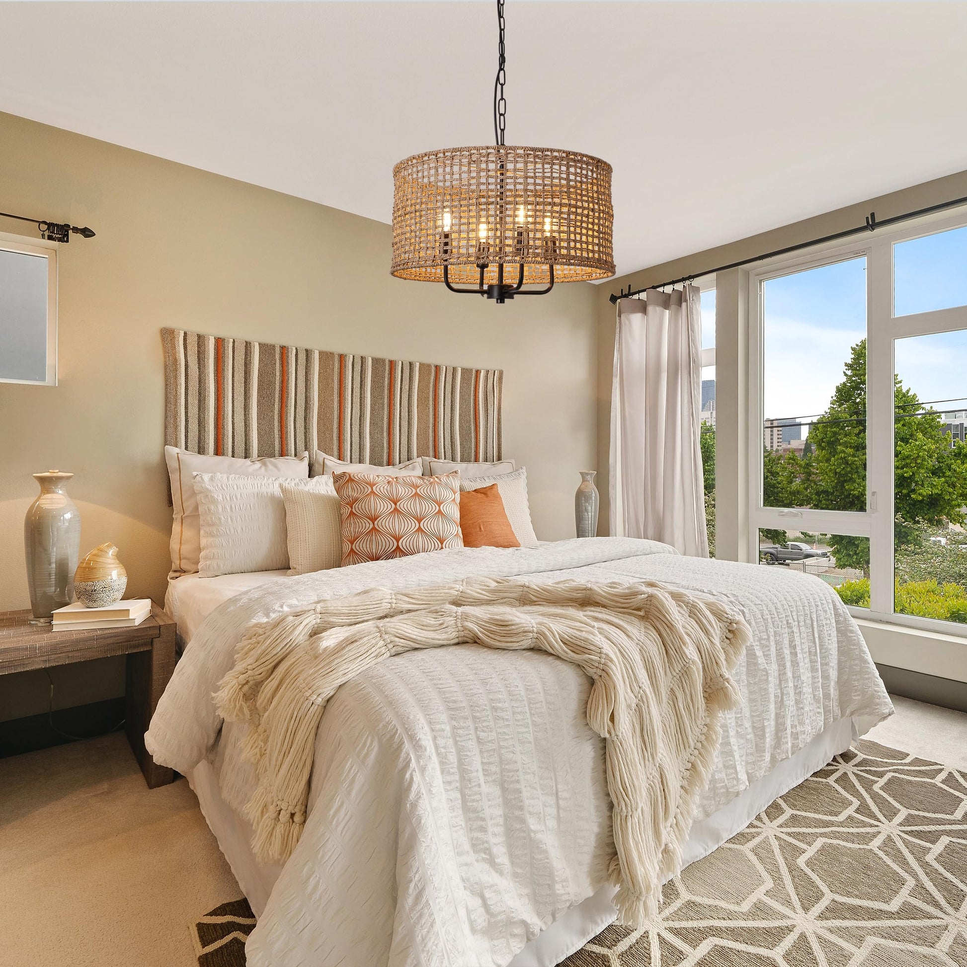 - VERSATILE APPLICATION: Perfect woven pendant light for use in multiple areas such as bedroom, kitchen, living room, room, kitchen island and more to add more spice to your home! Can be mounted on an angled/sloped ceiling