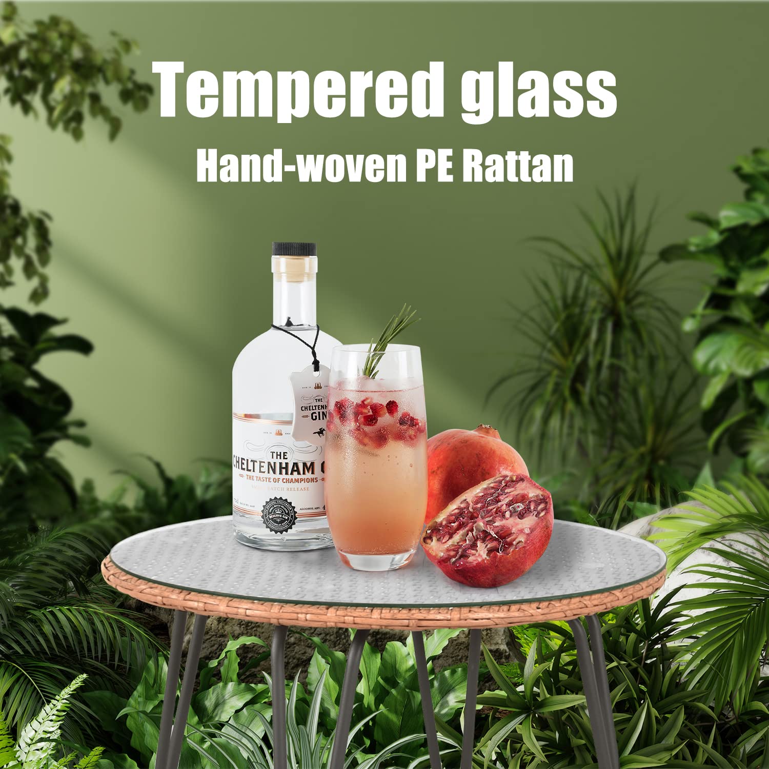 - High Quality & Material Powder-coated steel frame rust-proof, longer service life. High-quality weather-resistant hand-woven wicker will not fade. Top of toughened glass and weather-resistant, tear-resistant, and UV-resistant wicker.