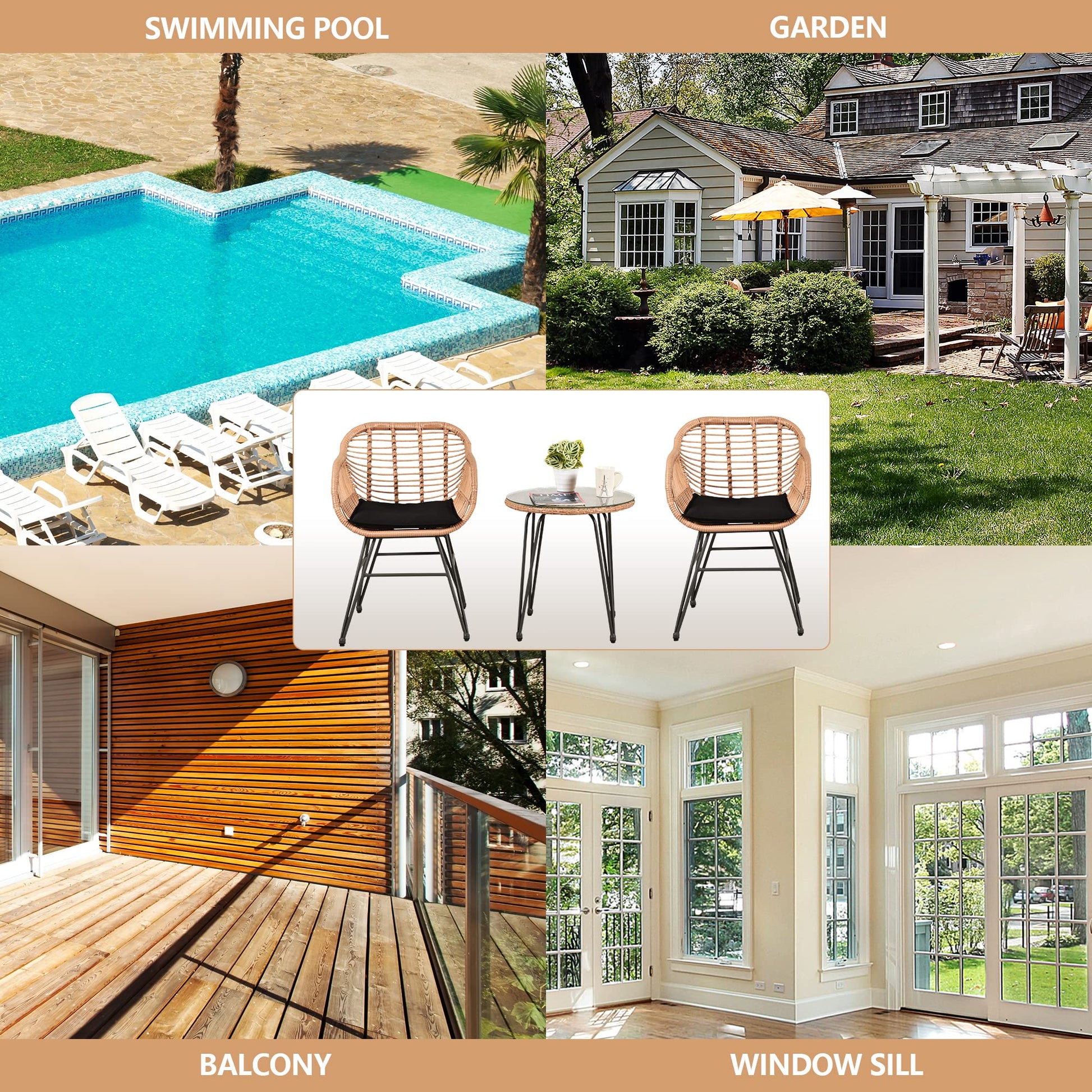 - [Excellent Stability & Durability]This 3pcs patio furniture set is equipped with non-slip feet pads to protect your floor and make the rattan conversation chair set stability, Wicker & extra-widen seat , the whole chair can hold up 330lbs weights.