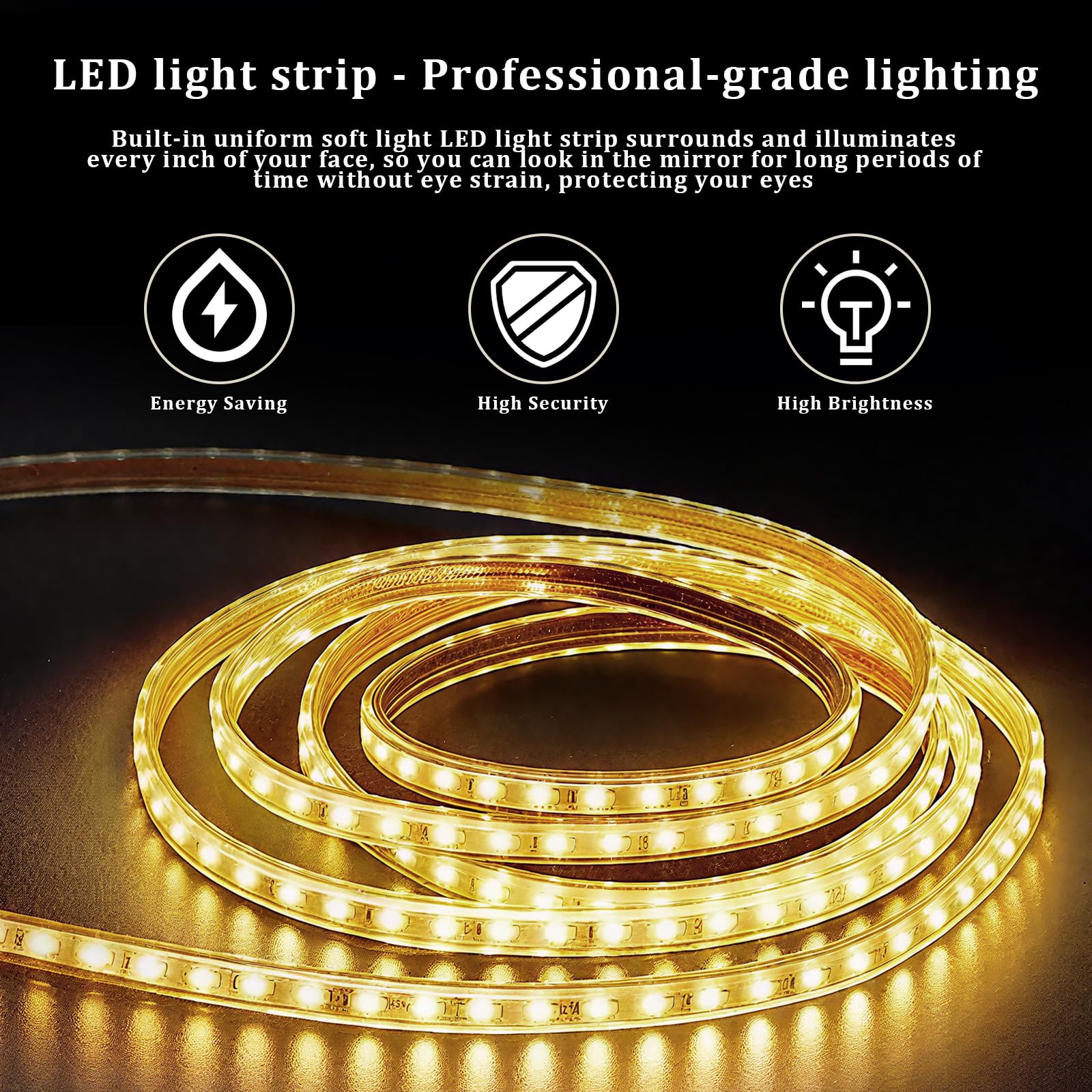Designed for both functionality and elegance, this smart mirror offers three adjustable color temperatures to suit any mood or task—from energizing cool white for morning routines to warm ambient lighting for relaxing evening rituals. The built-in memory function remembers your preferred settings, delivering a personalized experience every time you use it.
