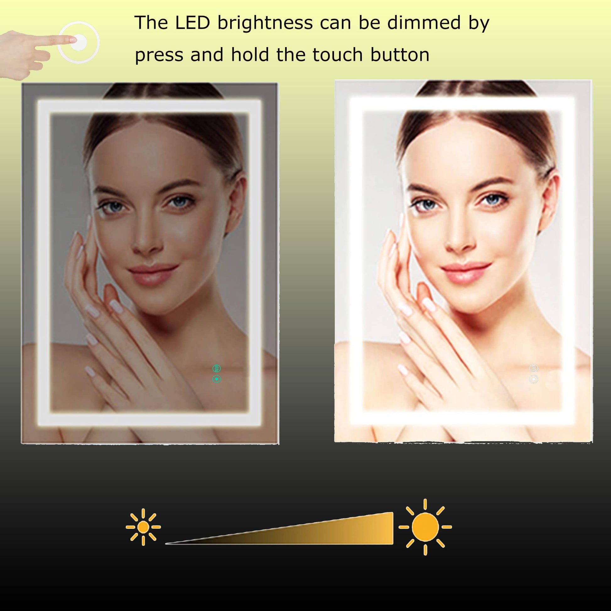 LED Vanity Mirror with Lights 24x18 Inch - Dimmable Wall Mounted Bathroom Mirror