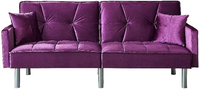 75.6" Convertible Modern Wood & Velvet Fabric Sofa Bed in Purple