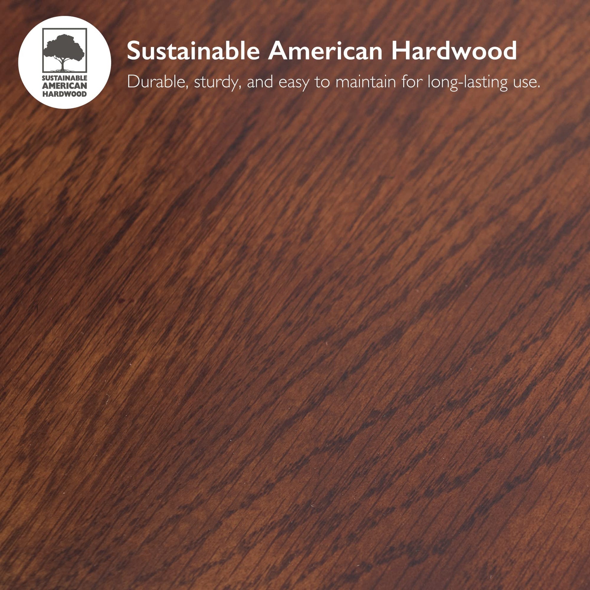 - Hand-applied mission oak finish on hardwood solids