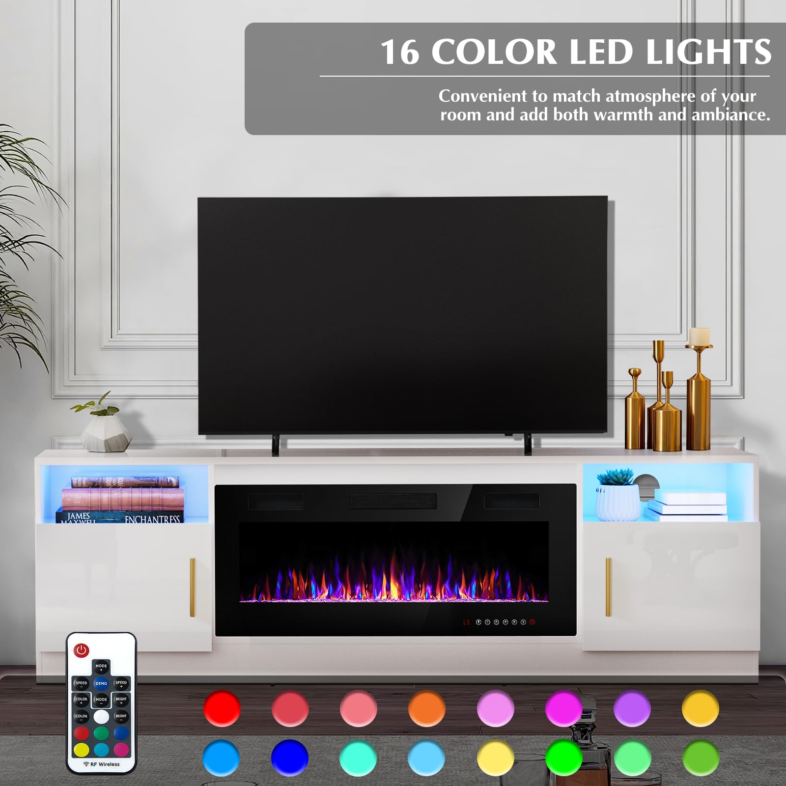 Fireplace tv Stand with 36 inch Fireplace Up to 80" TVs,LED Light Entertainment Center