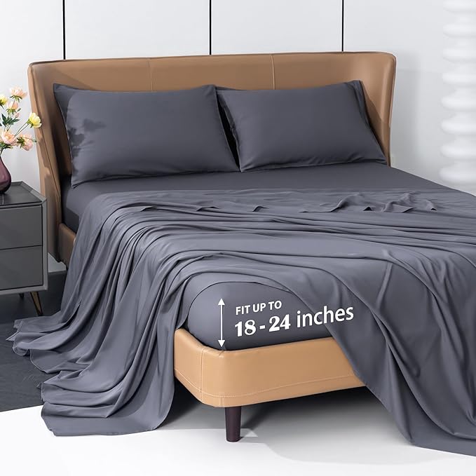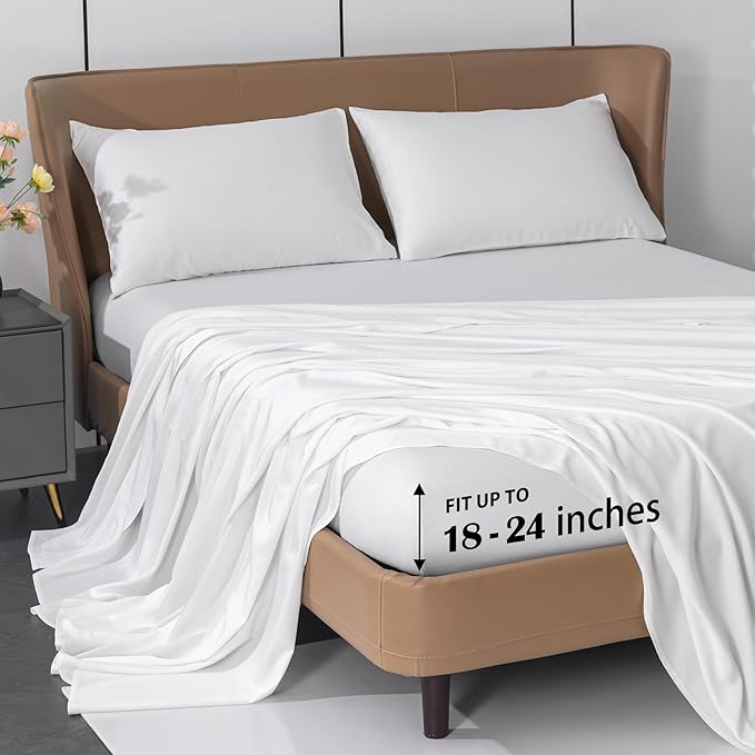 Cooling Sheets Rayon Derived from Bamboo 18"-24" Extra Deep Pocket Queen Sheets
