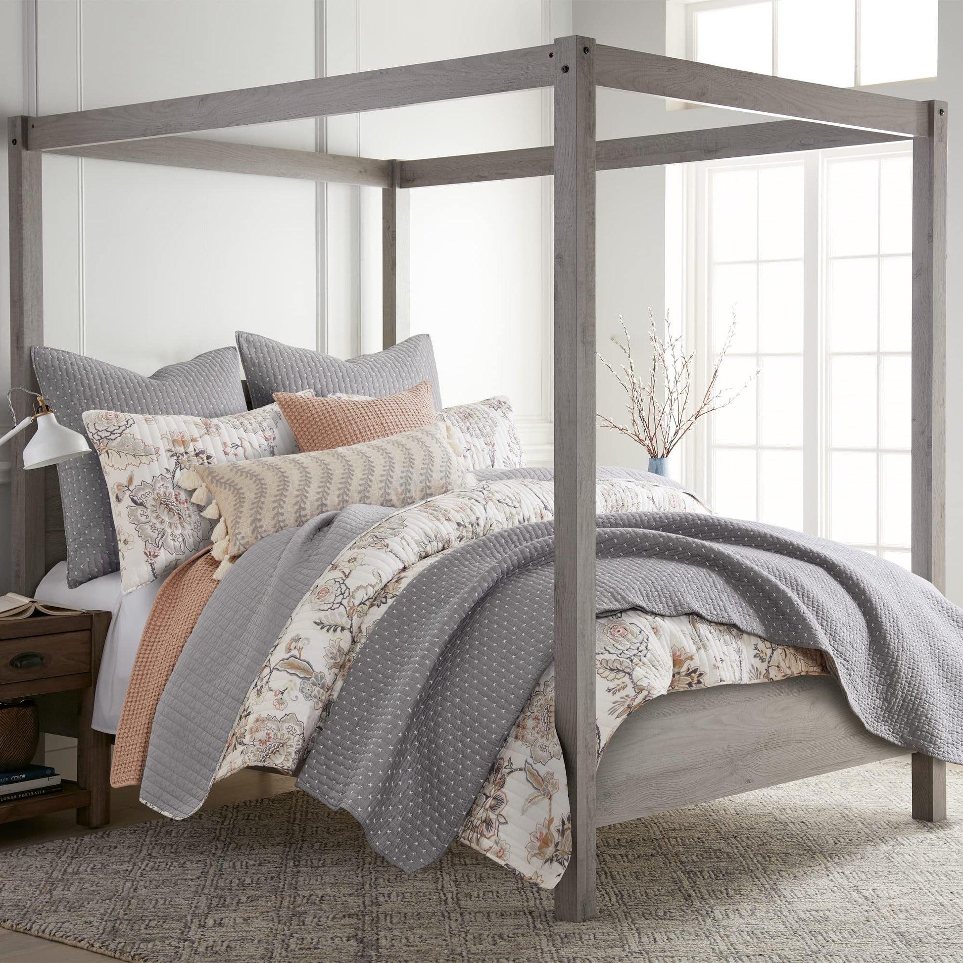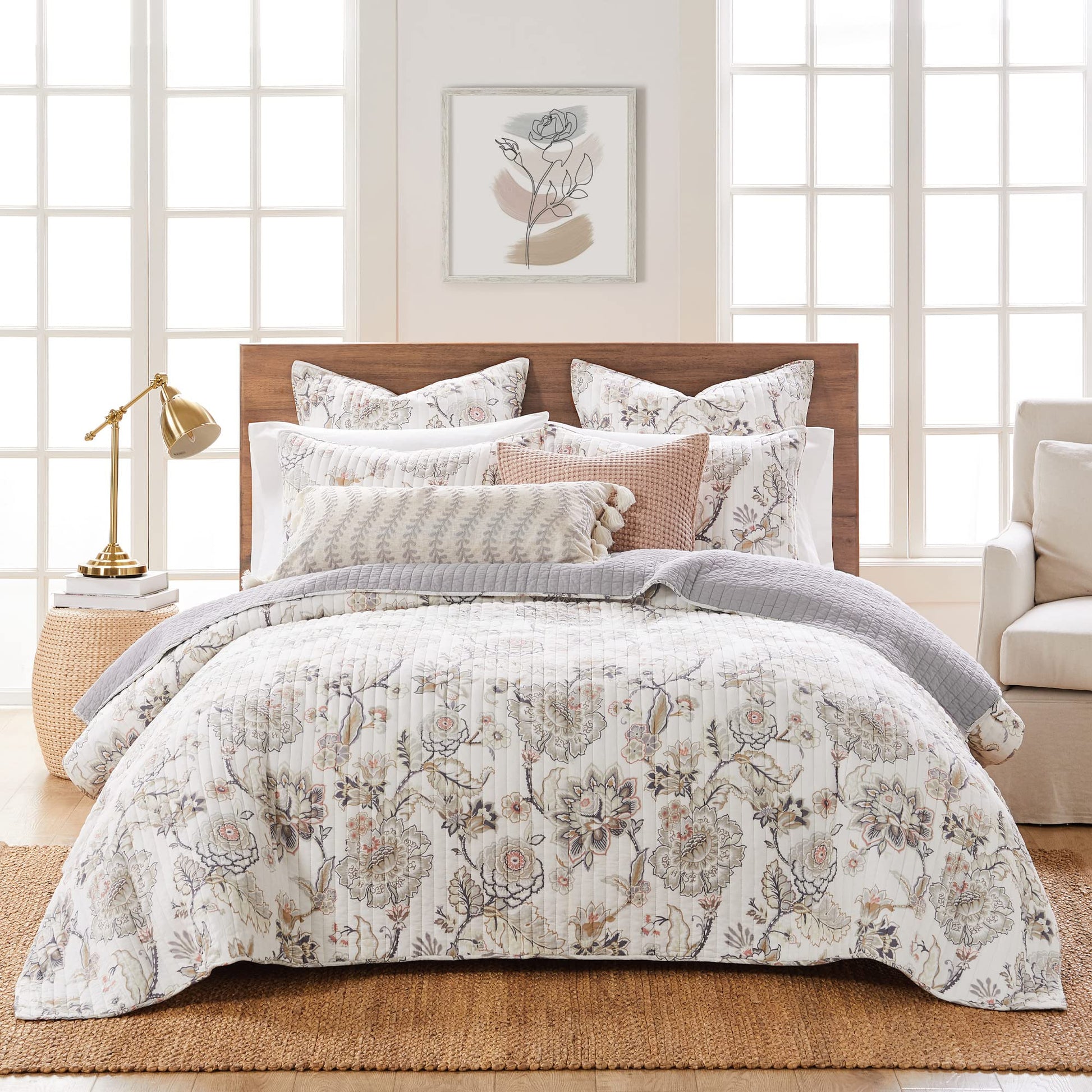 Ophelia Quilt Set - Full/Queen Quilt and Two Standard Shams - Floral - Taupe Grey Cream Blush