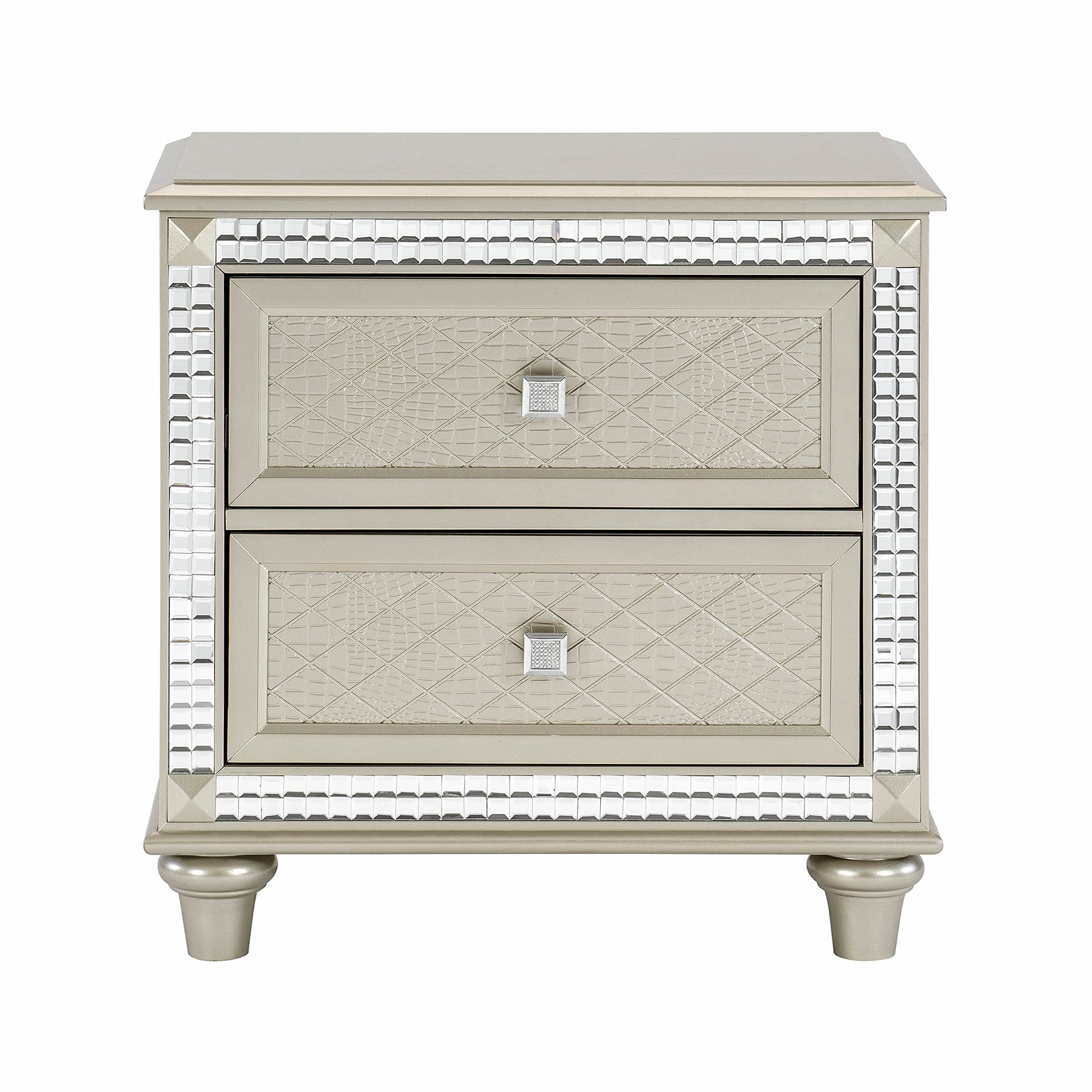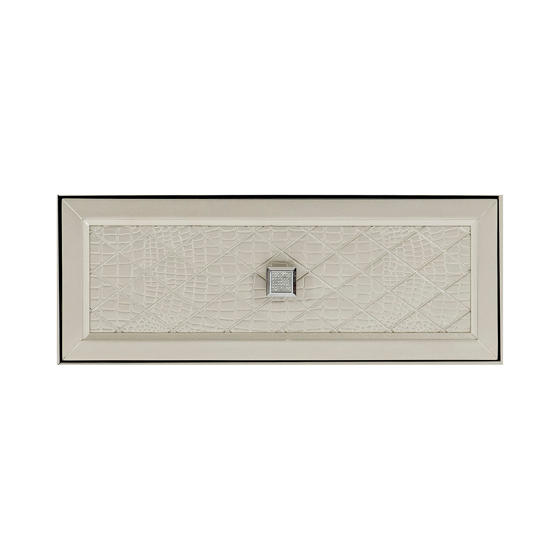 - Embossed Textural Drawer Front + Acrylic Crystals Trim + Polished Chrome with Crystal Knobs