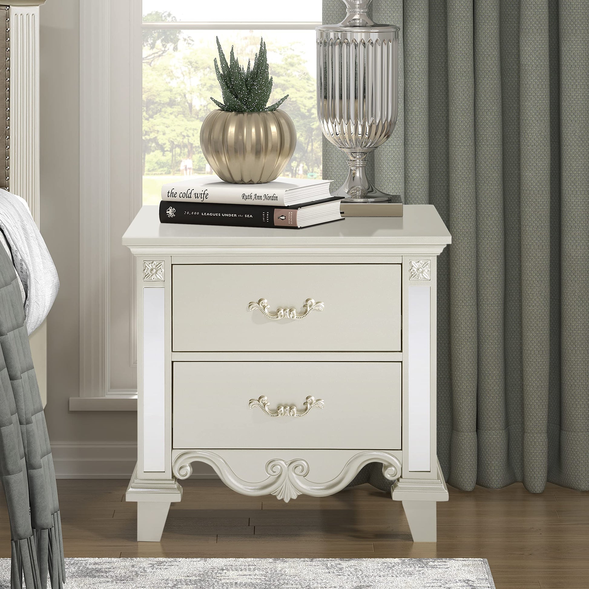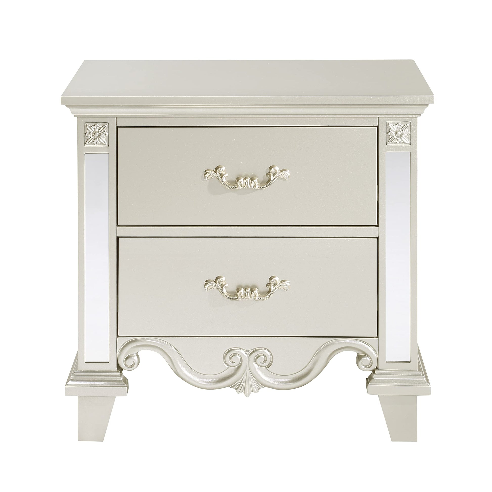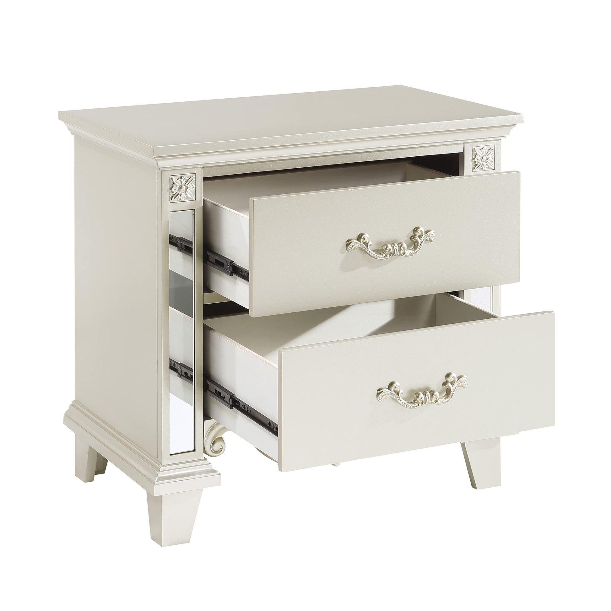 - One (1) traditional nightstand in champagne finish