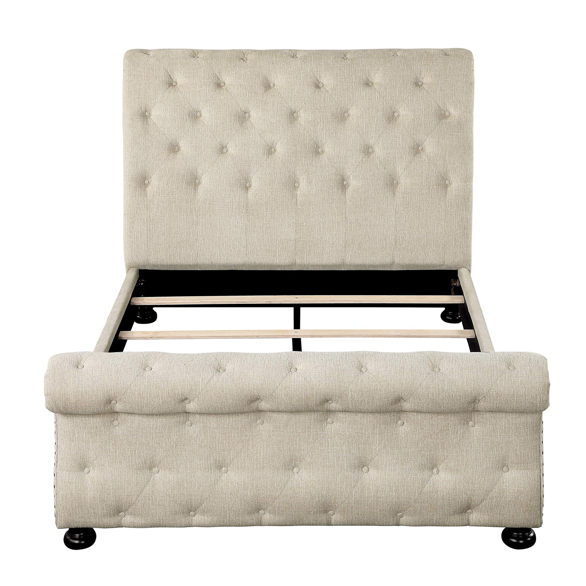 - Modern Traditional Look + Sleigh Bed Design + Beige Chenille Fabric