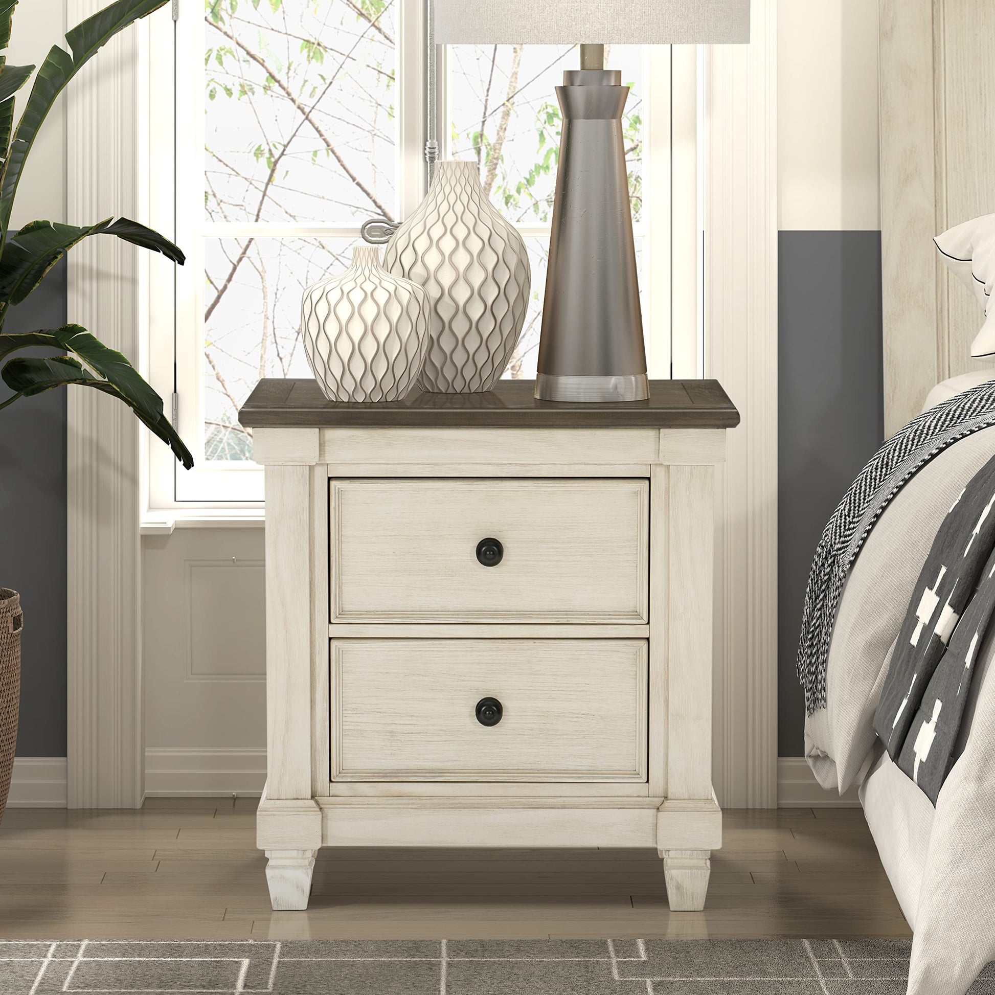 Penza 2-Drawer Nightstand, Antique White/Rosy Brown