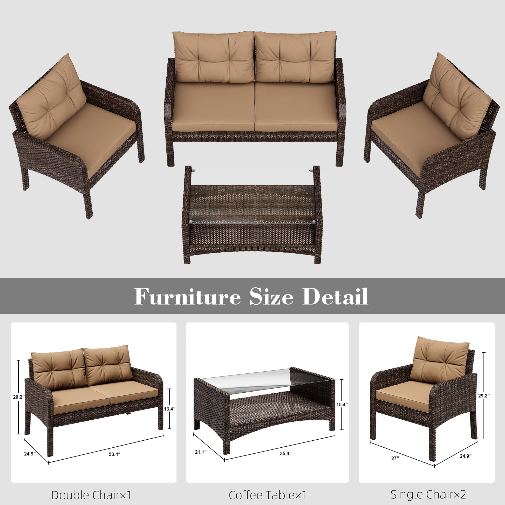 4-Piece Patio Furniture Set Outdoor Rattan Wicker Sofa Set with Cushions