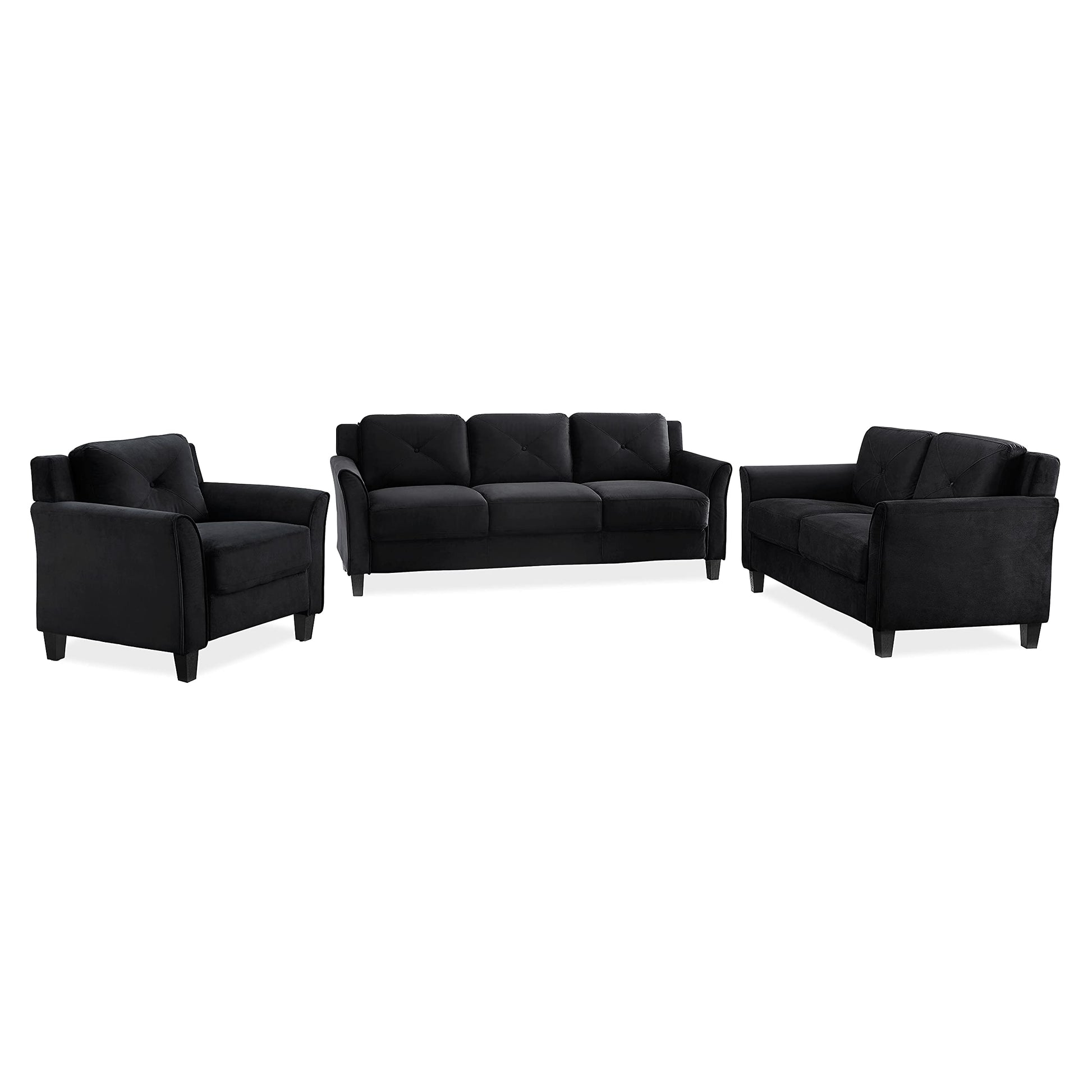 - COMFORTABLE LOVESEAT: Our button-tufted rolled-arm Harrington loveseat has thick, plush seat cushions for the utmost in comfort and style. It's perfect for lounging in front of the television or a roaring fire.