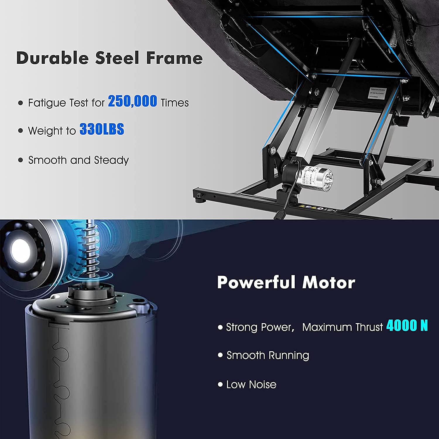 - Power Lift Motor: UL-certified silent motor smoothly lifts or reclines the chair up to 150°, reducing strain on knees and back.
