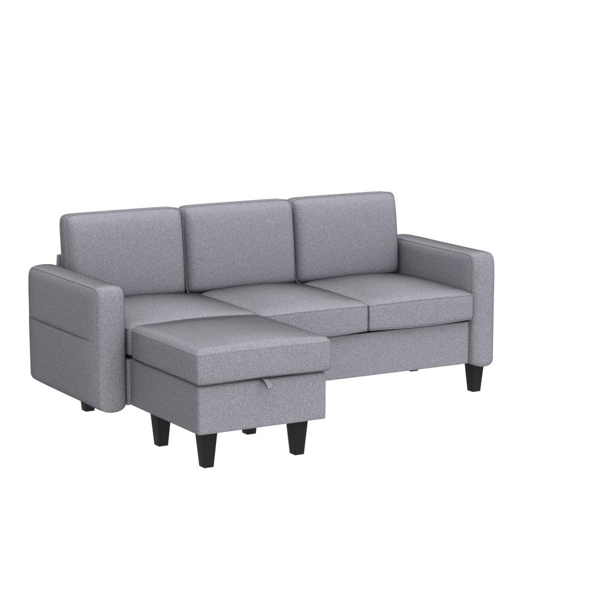 Light Grey Convertible Sectional Sofa Couch,3-Seat L-Shaped Sofa