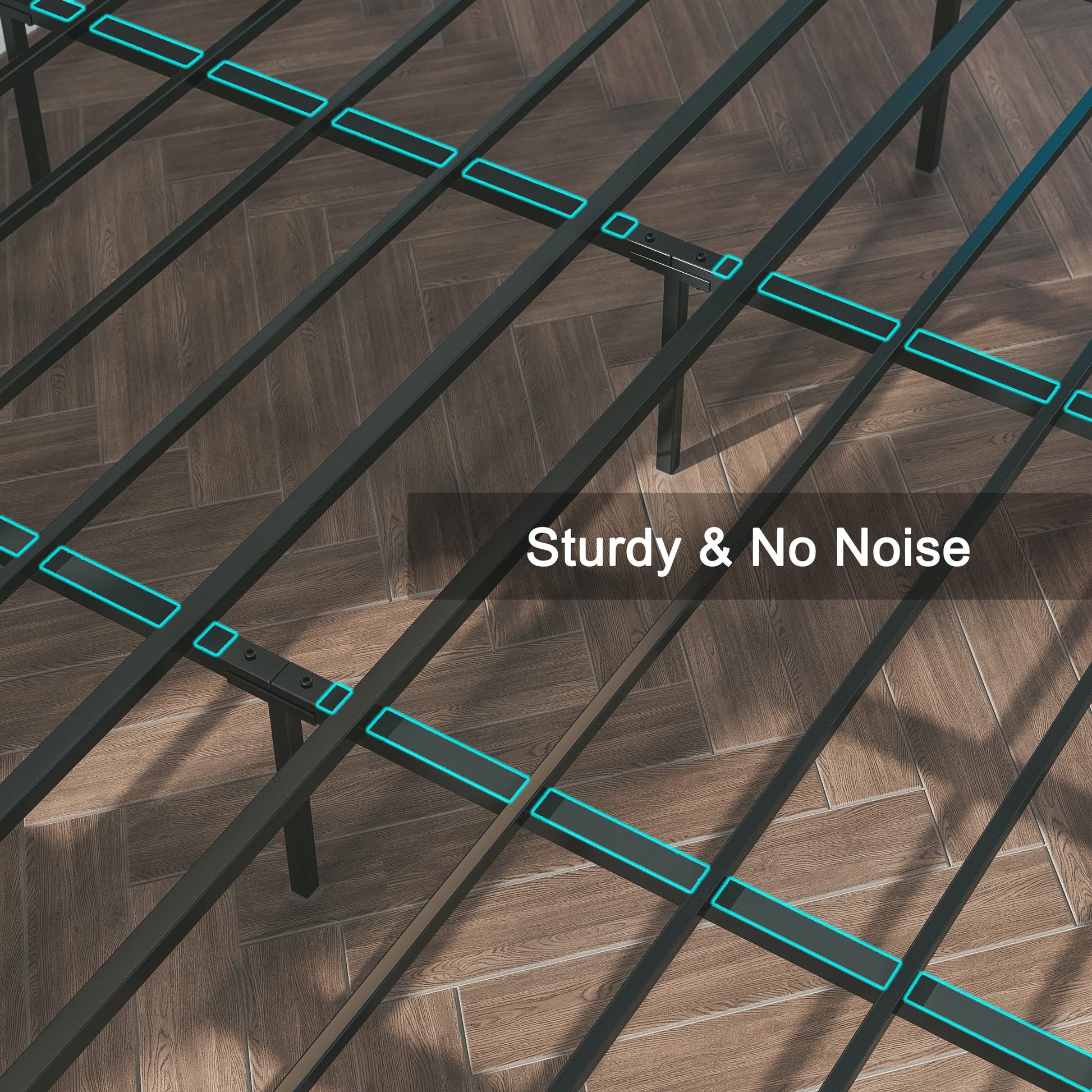 Say goodbye to disruptive noises with our non-slip strips that secure the slats in place, ensuring peaceful nights. The heavy-duty metal slats, designed for optimal mattress comfort, make a box spring unnecessary, allowing you to fully relish a noise-free and comfortable sleep experience.