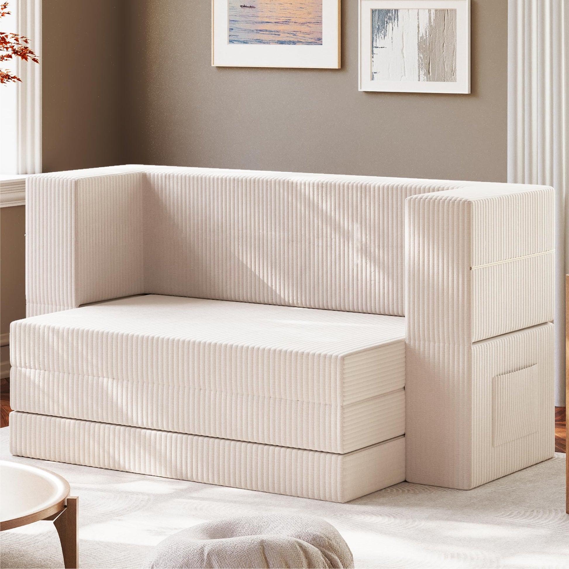 - Premium Fabric: The futon sofa bed is made of soft, skin-friendly and breathable corduroy fabric, which is durable and fashionable. The bottom adopts non-slip design to prevent the mattress from moving.